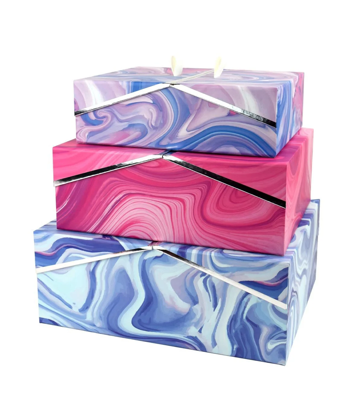The Small French Door Storage Box with Metallic Trim - Marble Pattern will make a great choice for storing your decor ornaments. It flaunts a lovely marbleized pattern in vivid hues and will surely liven up your home decor. This decorative storage box is designed with a French door-style lid. You can also use it for keeping toys and craft supplies organized.