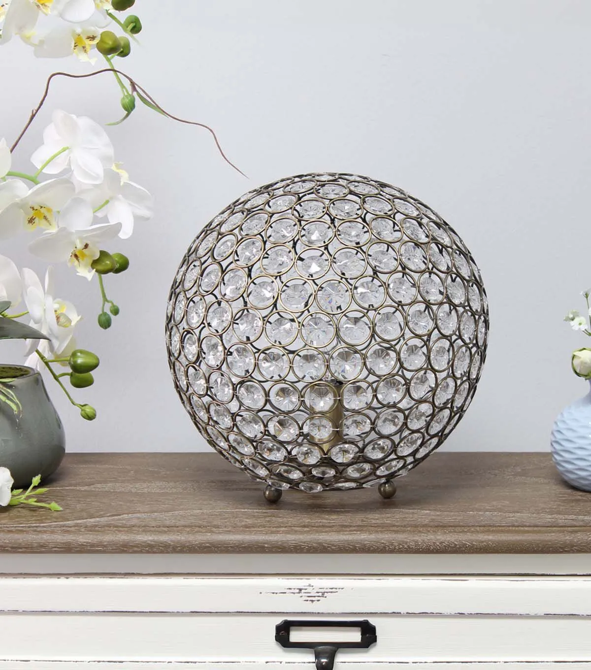 Lalia Home 10' Ellipse Medium Contemporary Metal Crystal Round Sphere Glamorous Orb Table Lamp for Living Room, Bedroom, Entryway, Office, Foyer, Home Décor, Antique Brass