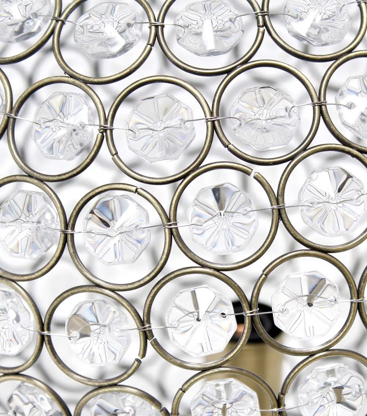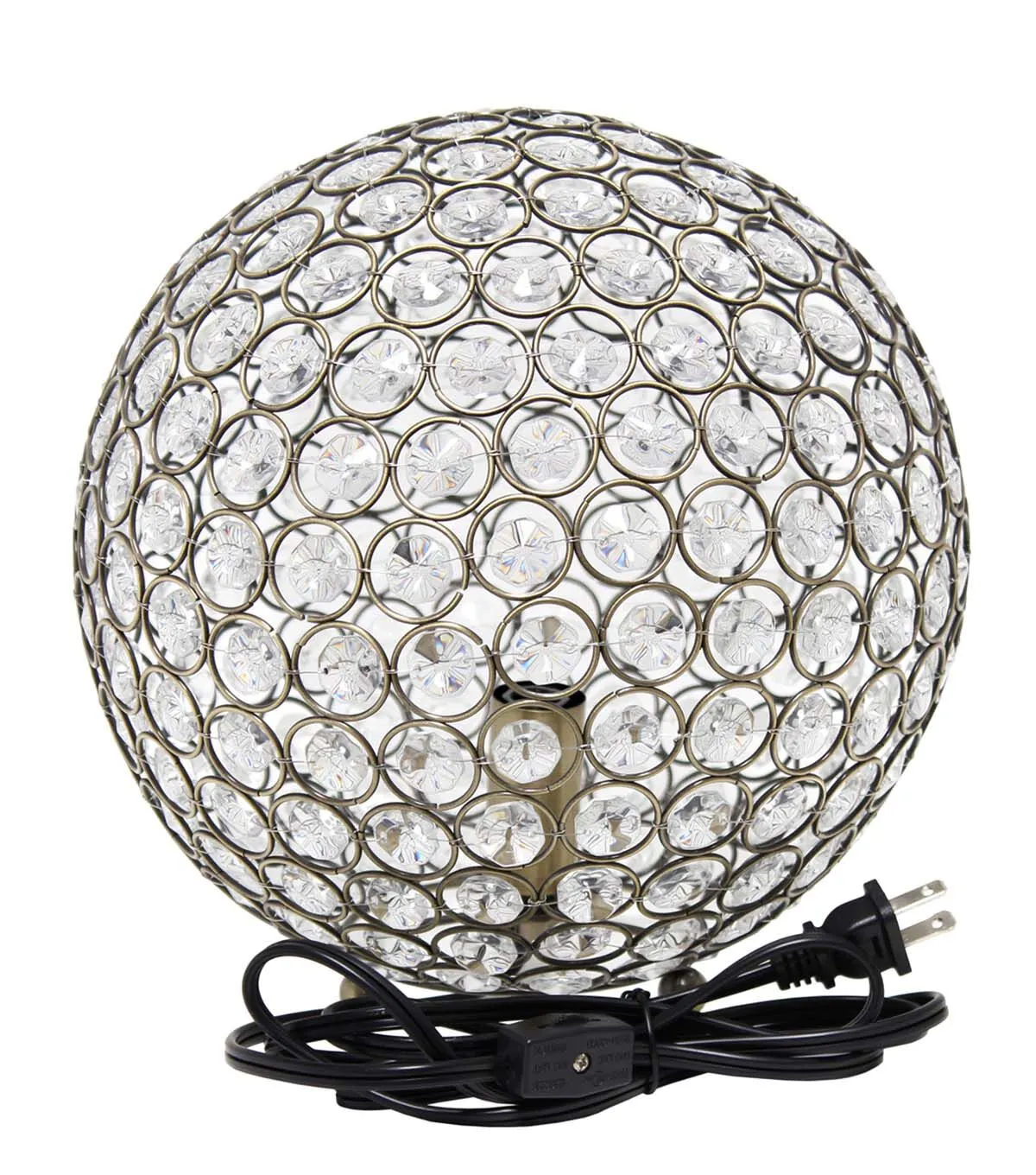 This 10' sphere shaped table lamp is a designers dream with its gorgeous shimmering crystals surrounding the rounded metal frame. Available in a number of finish options ranging from a classic gold, to a modern chrome. With the turn of a gear (rotary) switch on the cord of the lamp, a rich glow shines through the crystals, leaving your space breathtakingly illuminated.