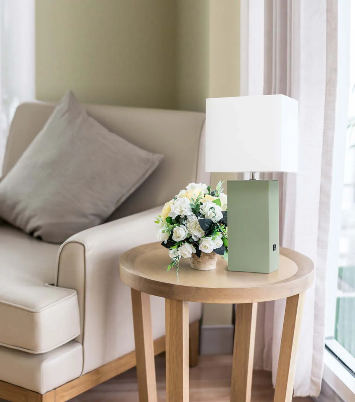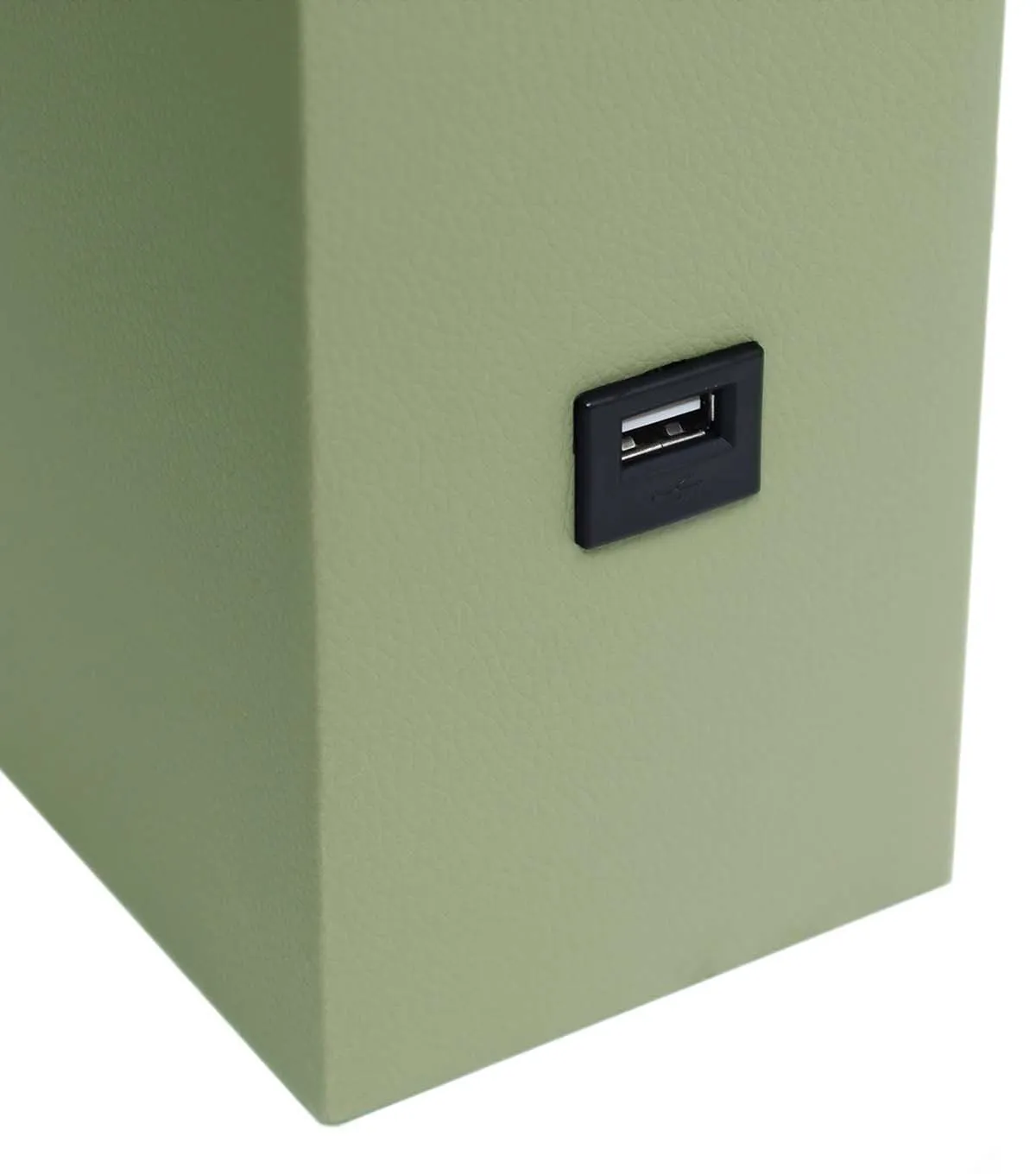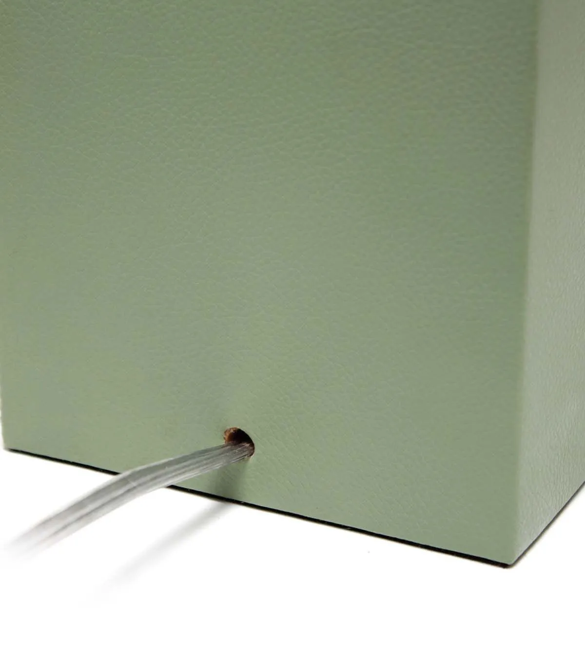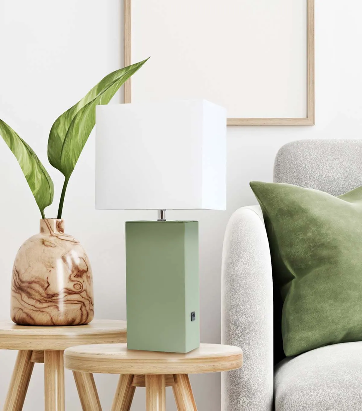 Lalia Home Lexington 21' Leather Base Modern Home Décor Bedside Table Lamp with USB Charging Port for Living Room, Bedroom, Entryway, Foyer, or Office with White Rectangular Fabric Shade, Sage Green