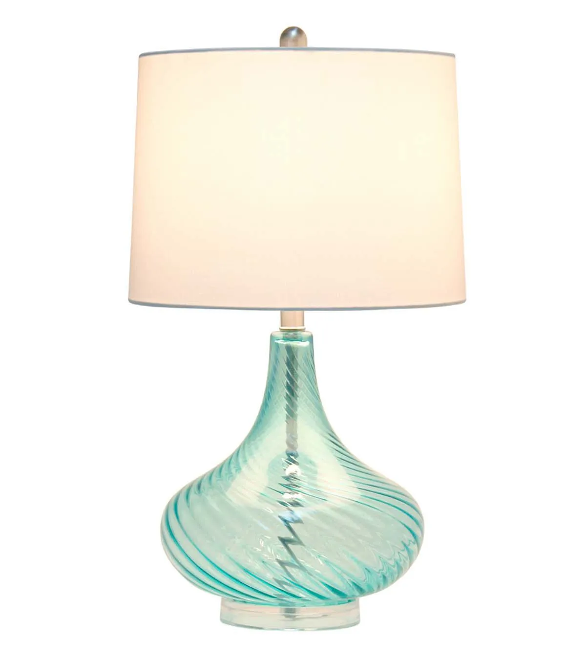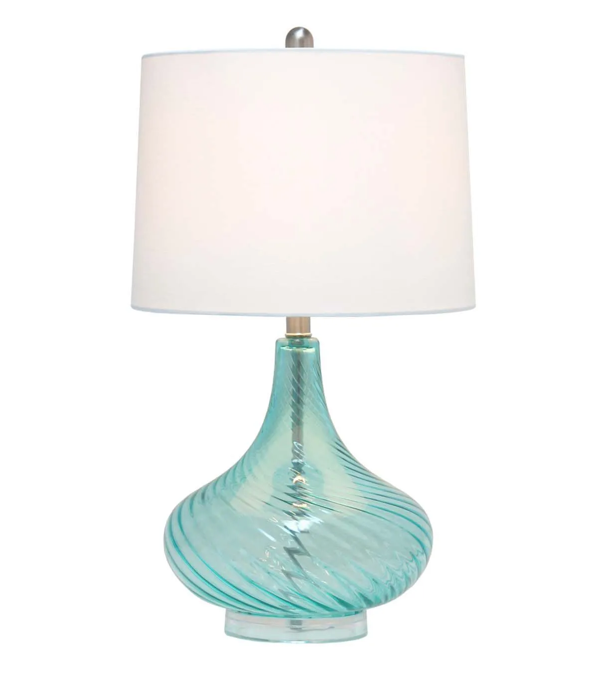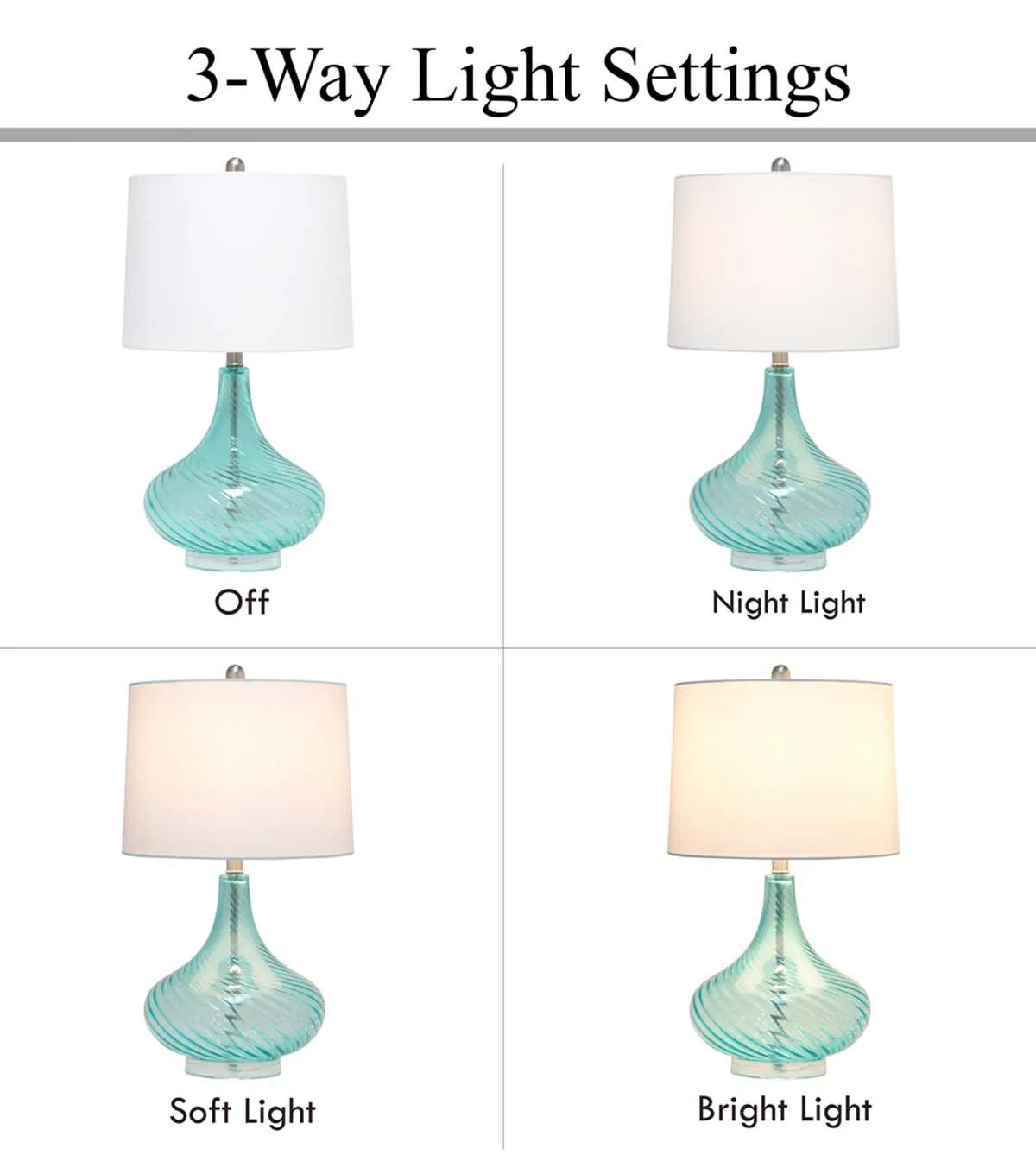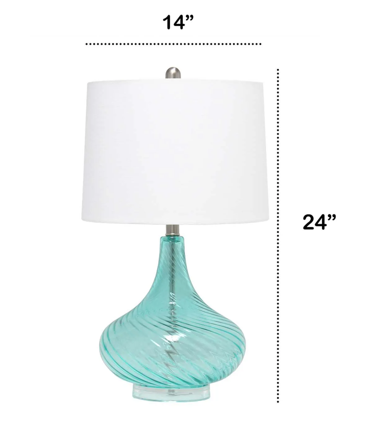 Lalia Home 24' Classix Contemporary Wavy Colored Glass Table Lamp with White Linen Shade for Living Room, Bedroom, Entryway, Dining Room
