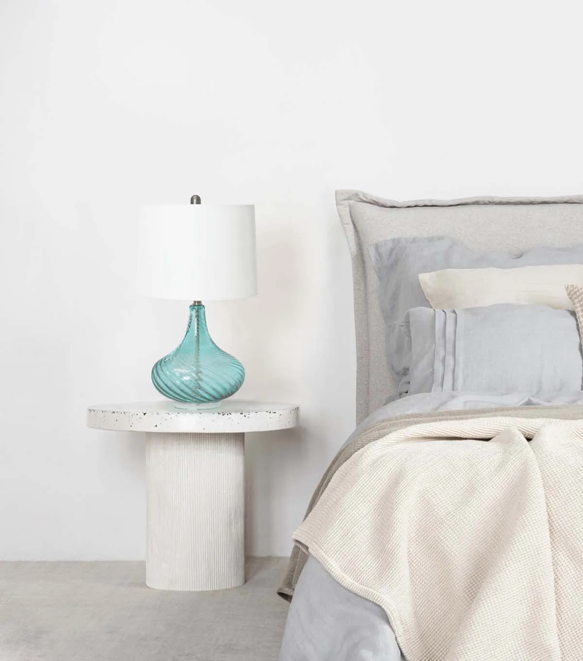 Illuminate your living space with this simple yet stylish glass table lamp. This lamp serves as a mesmerizing fusion of art and functionality, illuminating your surroundings with a soft, inviting glow. The perfect addition to your living room or bedroom nightstand.