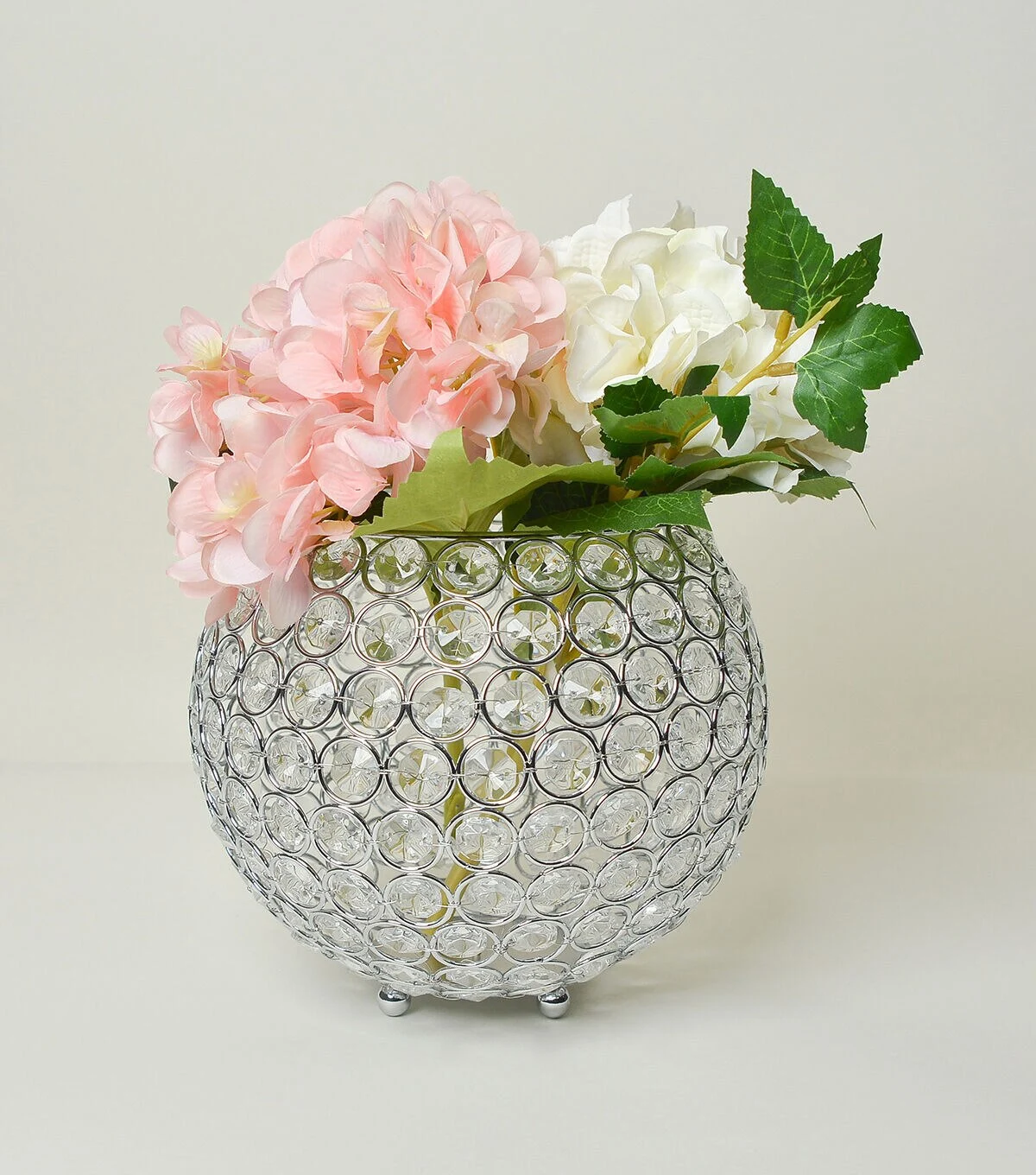 For those of you looking to vamp up your personal space, or are in the search to add some razzle-dazzle to a special event, this 6.75 inch candle holder is exactly what you've been looking for! The round design is built on a flawless chrome base elevated on 3 small pellets with sparkling K5 crystals throughout. You can utilize this piece not only as a candle holder, but can add some flowers or a keepsake, organize your make-up, brushes, pens, and supplies of choice as well. Perfectly suitable to fill with string lights for a warm, illuminating glow and a stunning decorative piece for special event centerpieces or accent decor. When using as a candle holder, we recommend that you use battery operated candles, tea lights, or votive candle with height of 7 inches or smaller for the right fit. Use of fire will cause metal to get very hot.