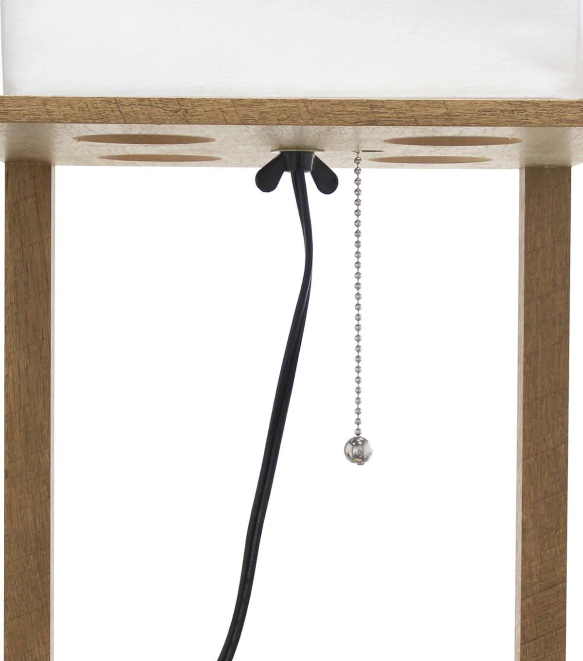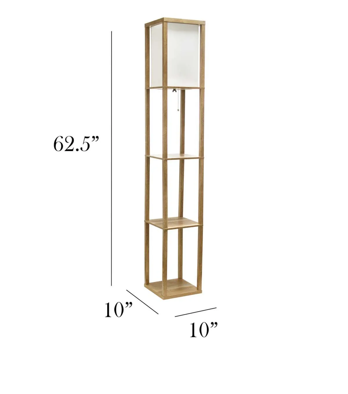 Simple Designs 62.5' Modern 3 Tier Standing Floor Lamp Etagere Organizer Storage Shelf with Linen Shade for Home Décor, Living Room, Bedroom, Office, Wood
