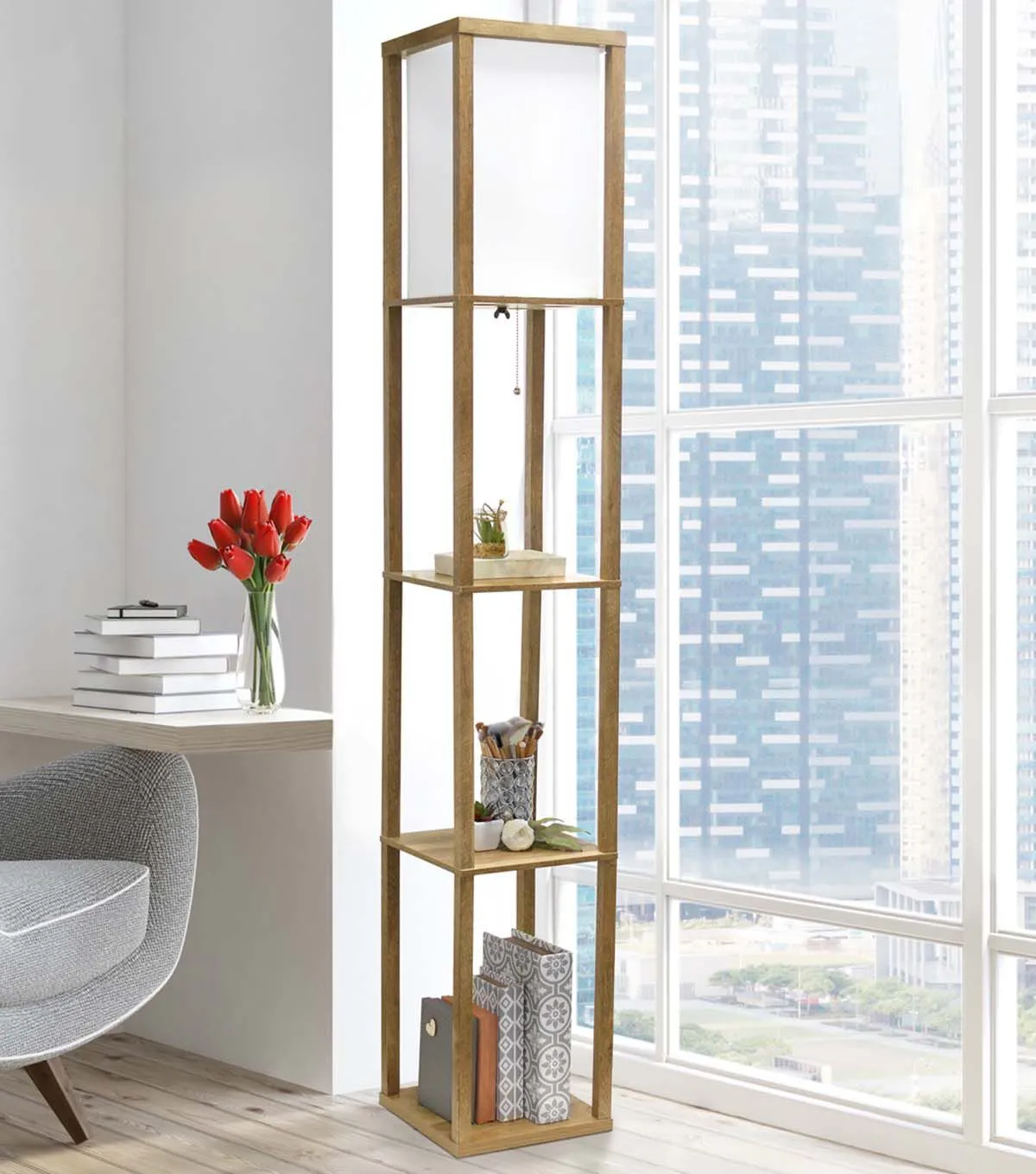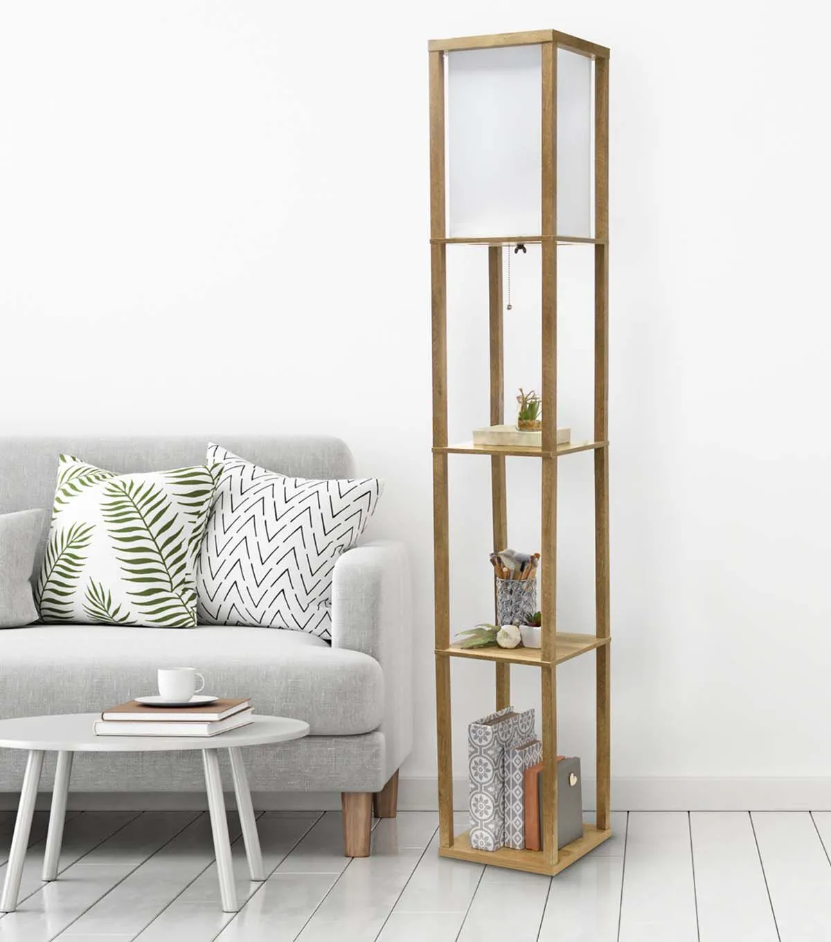 Illuminate your living space in style with our floor shelf lamp with linen shade. This gorgeous piece adds versatility as the shelves can be used to display photographs and other memorabilia. Meanwhile, the linen lamp shade casts a soft, warming light throughout your living space. This lamp adds sophistication and style to any home's décor.