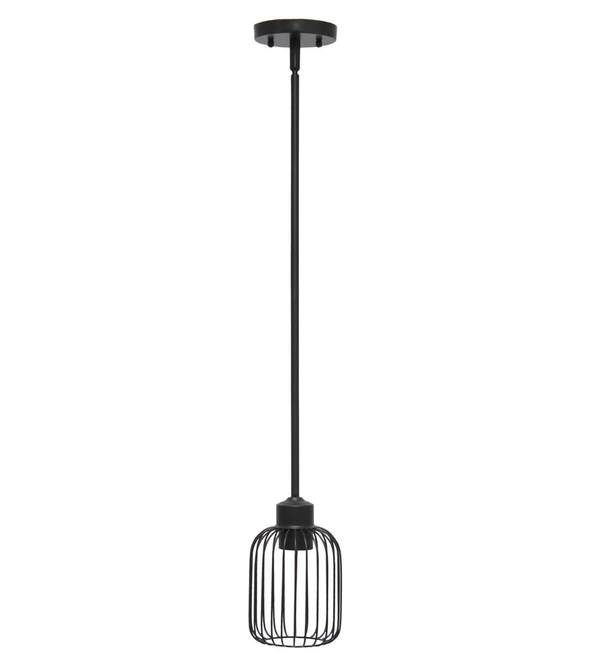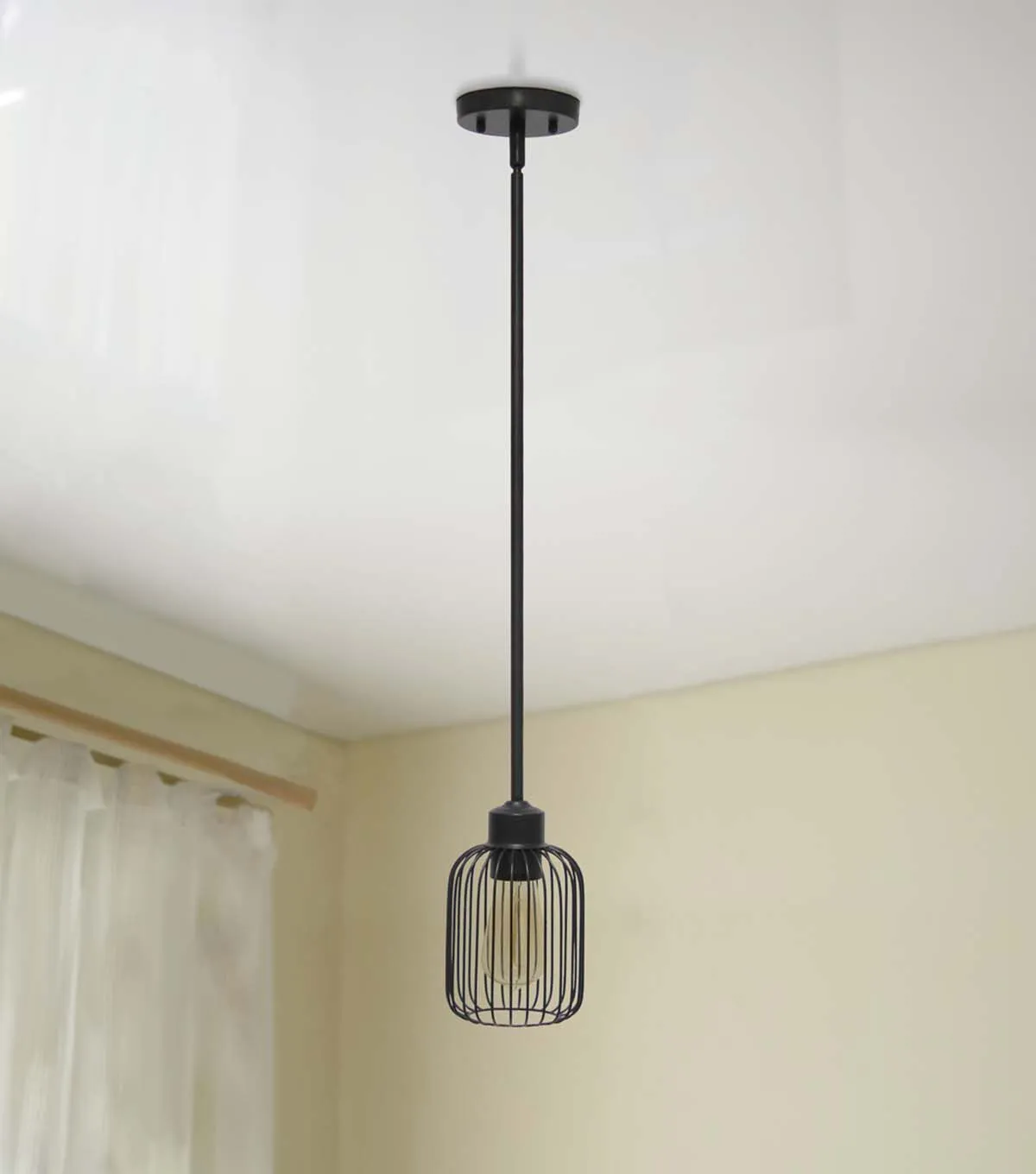 Lalia Home 7' Ironhouse One Light Industrial Decorative Hanging Metal Caged Mini Pendant Ceiling Light Fixture for Kitchen Island, Dining Room, Bar, Bedroom, Living Room, Entryway, Foyer, Black