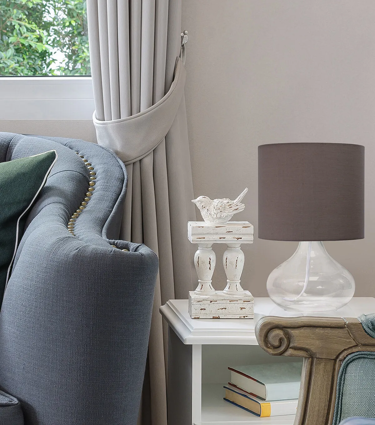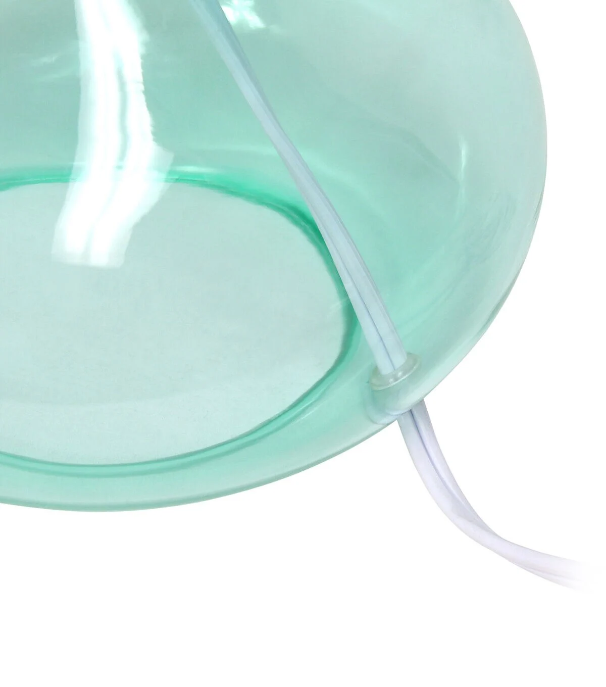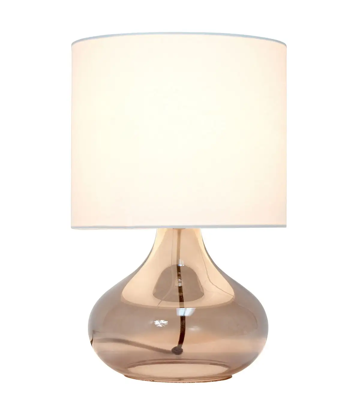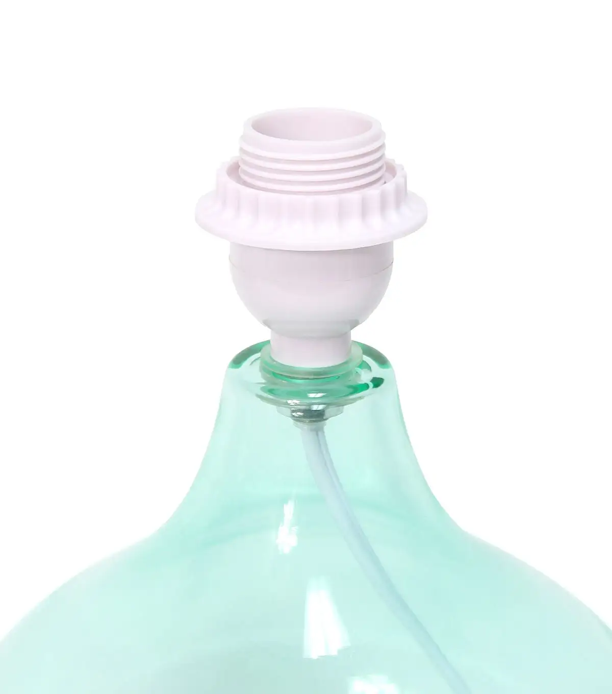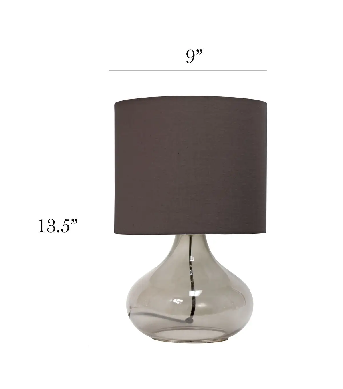 Illuminate your living space with this simple yet stylish glass table lamp. The aqua glass raindrop shaped base and white fabric drum shade is the perfect blend of charm to give your home a contemporary and modern upgrade. Perfect for living rooms, bedrooms, kids and teens, college dorms, apartments, nurseries, or offices.