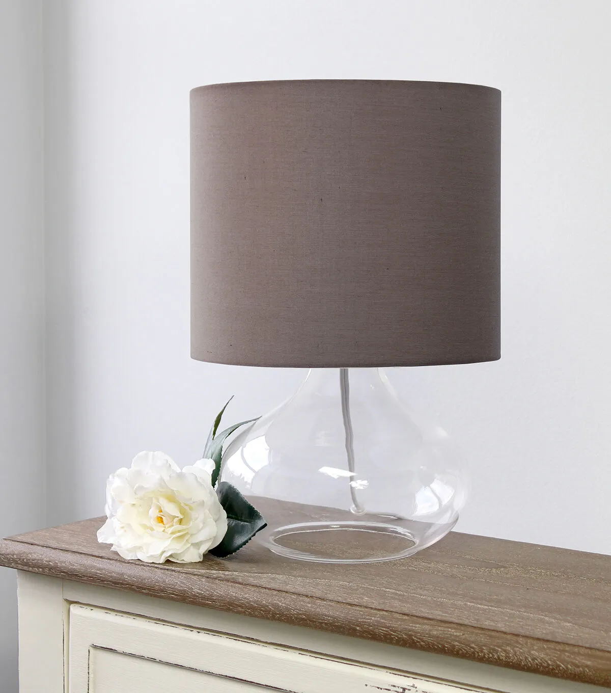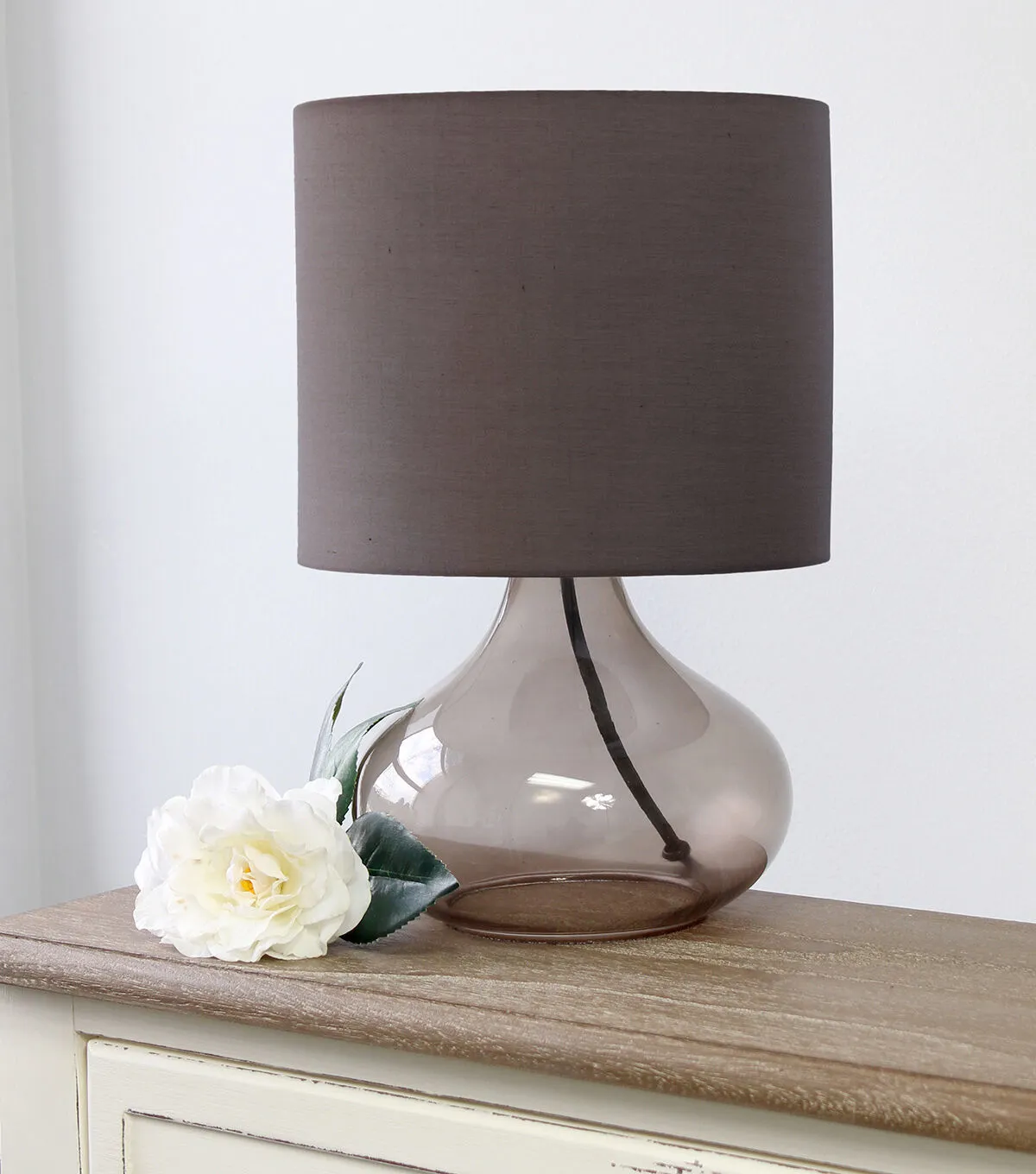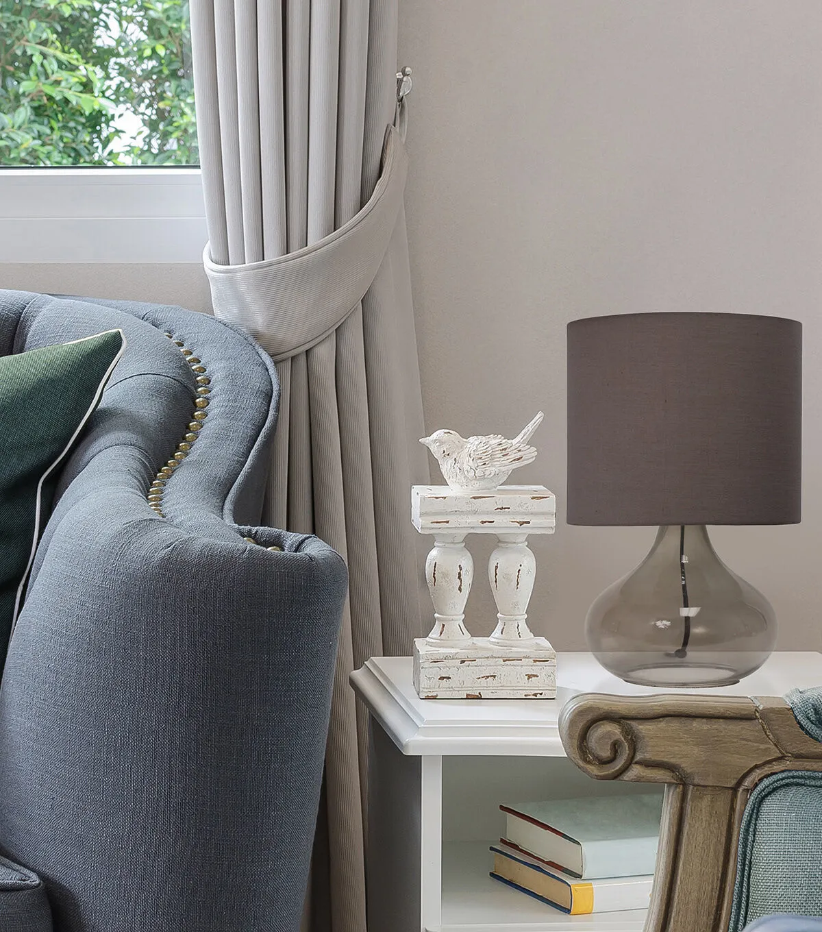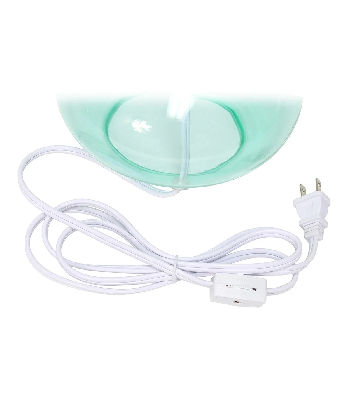 Illuminate your living space with this simple yet stylish glass table lamp. The aqua glass raindrop shaped base and white fabric drum shade is the perfect blend of charm to give your home a contemporary and modern upgrade. Perfect for living rooms, bedrooms, kids and teens, college dorms, apartments, nurseries, or offices.