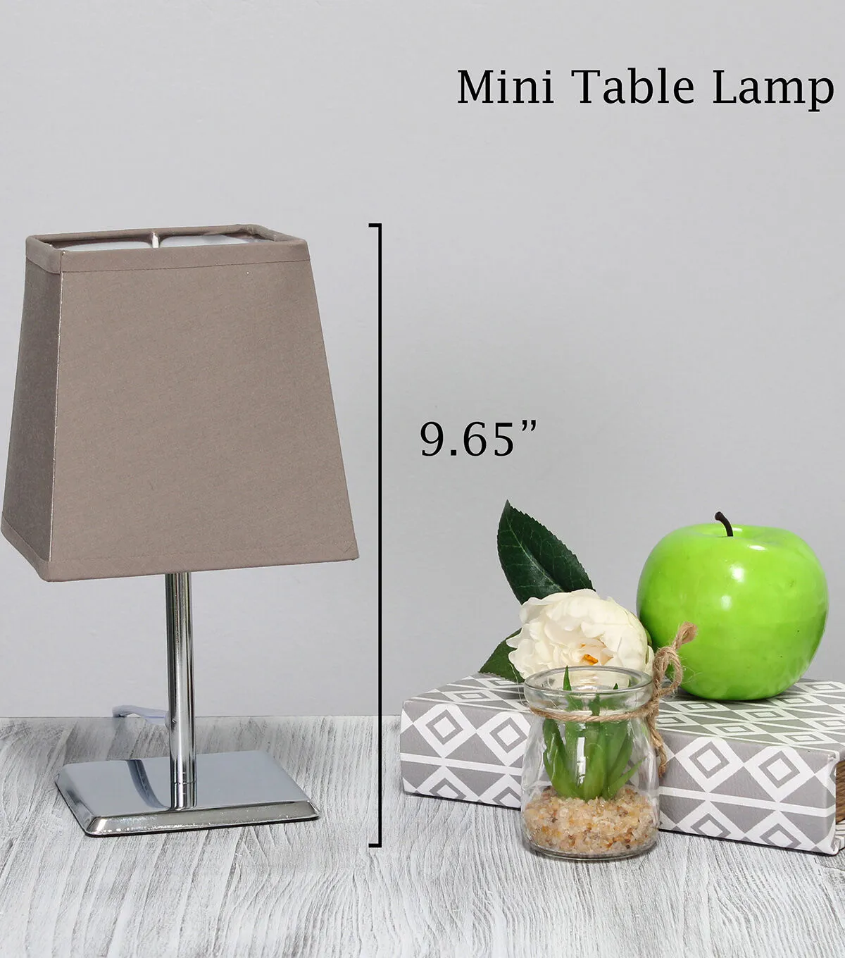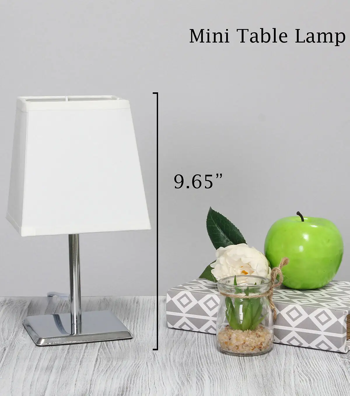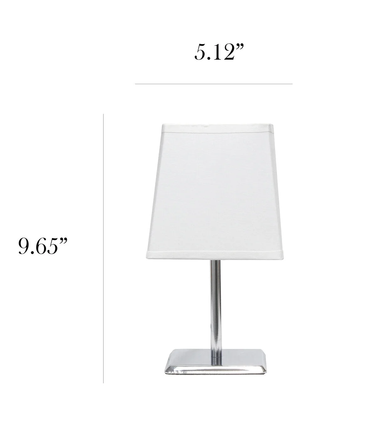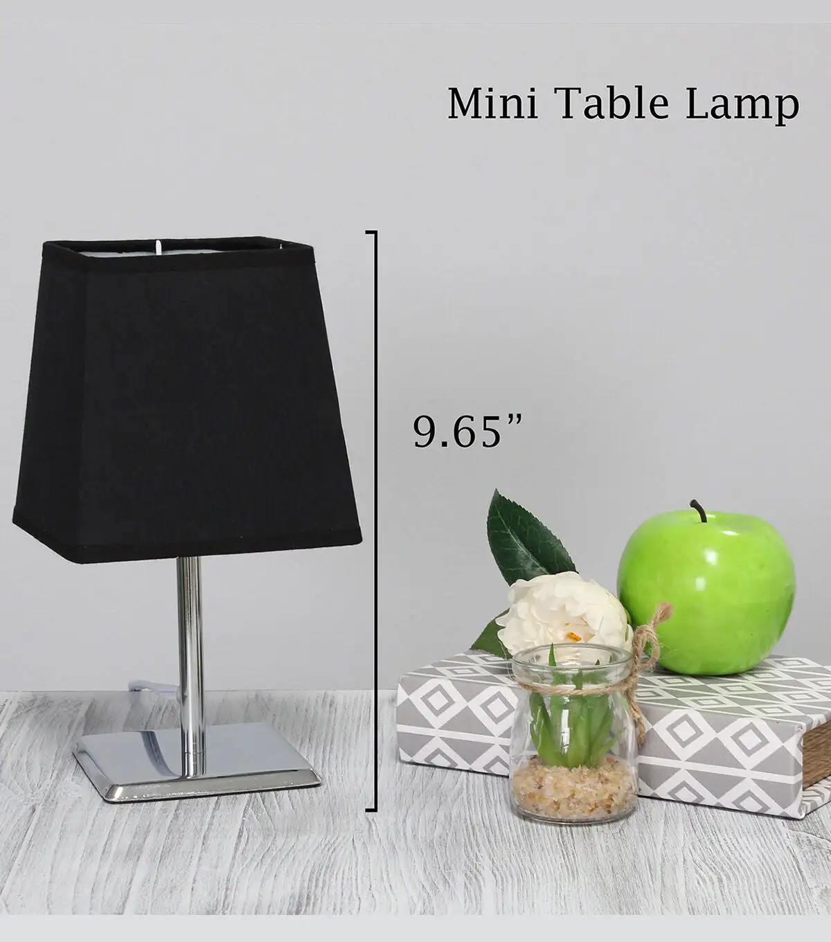 A lovely, inexpensive, and practical table lamp to meet your basic fashion lighting needs. This mini lamp features a chrome base and fabric shade. Perfect for living room, bedroom, office, kids room, or college dorm!