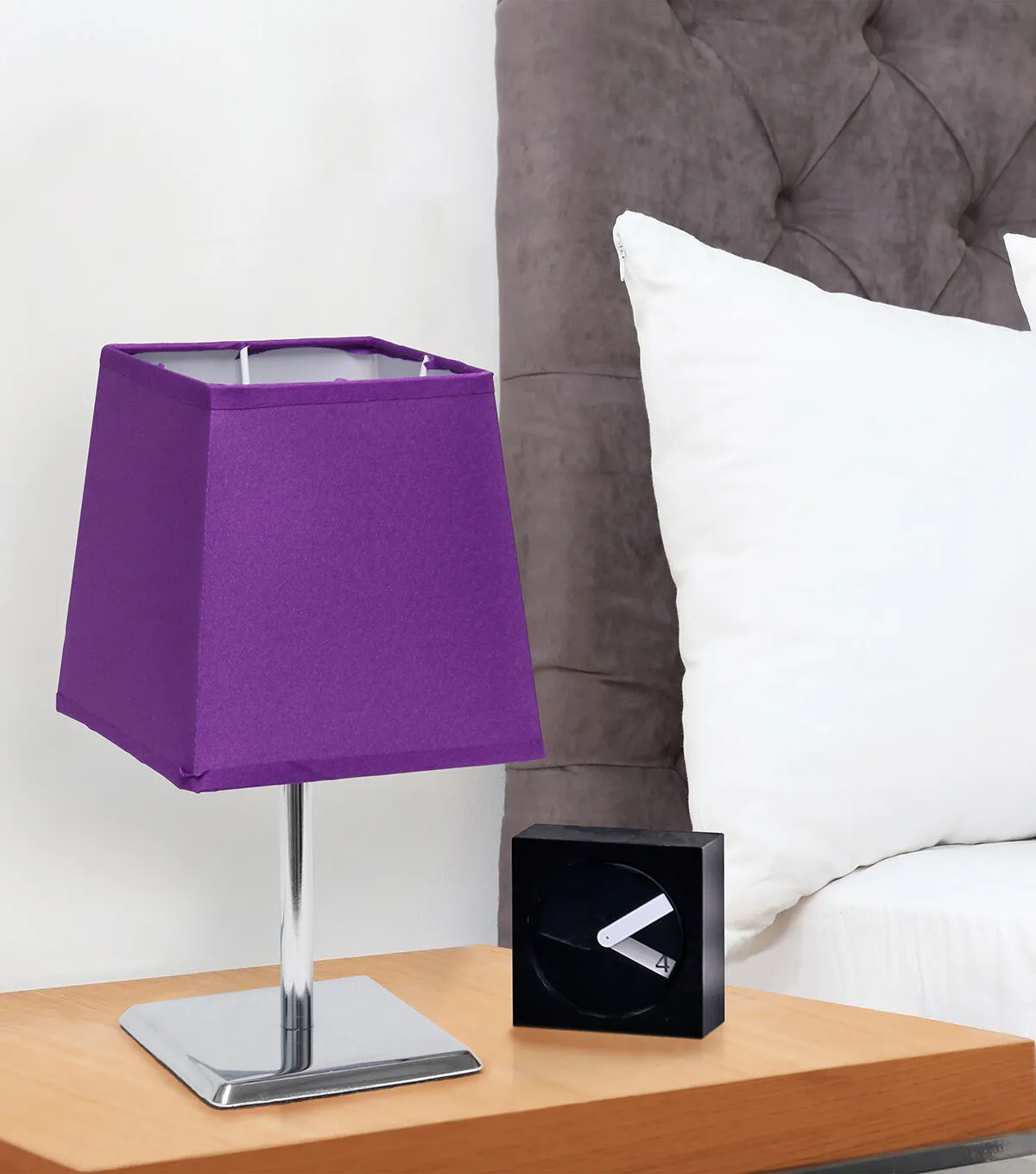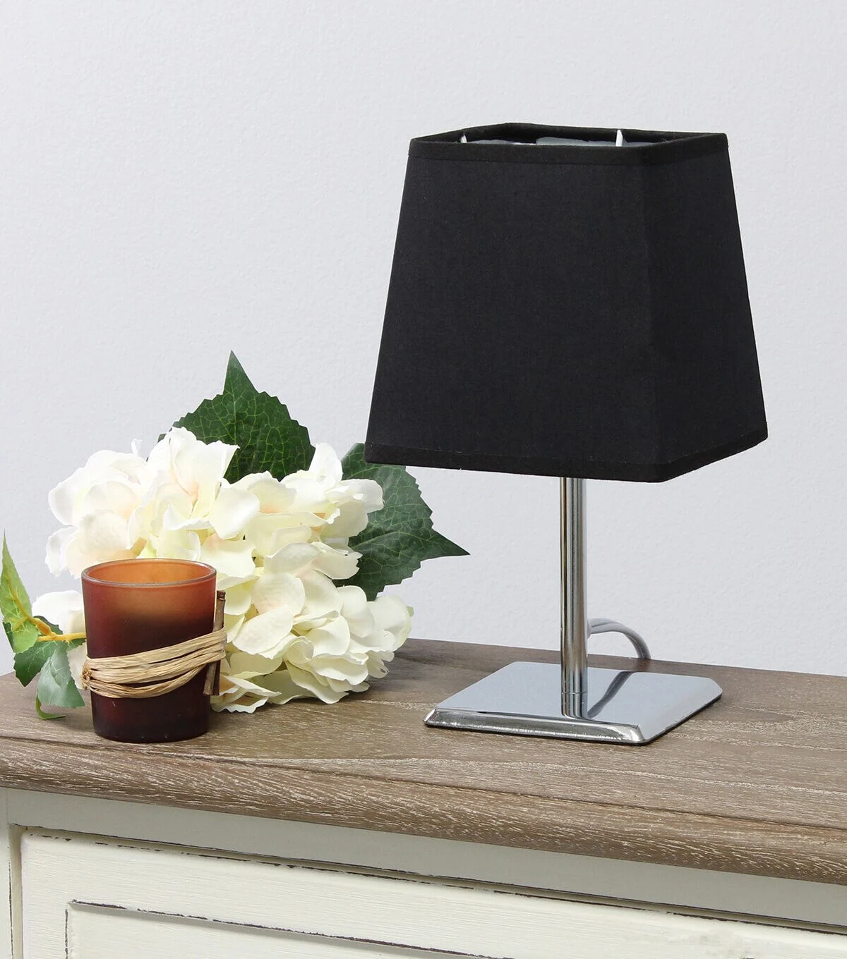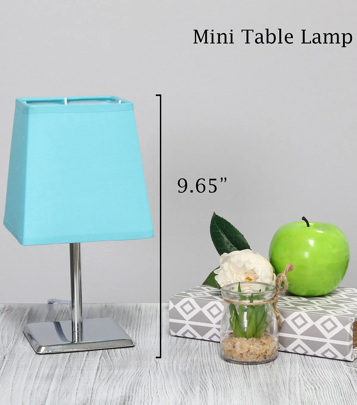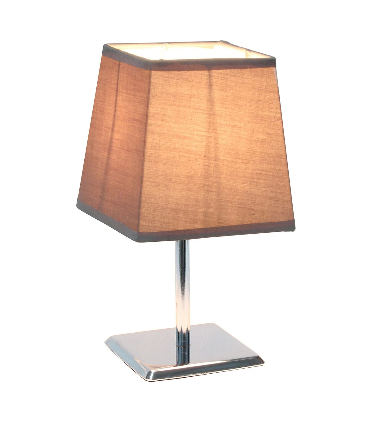 A lovely, inexpensive, and practical table lamp to meet your basic fashion lighting needs. This mini lamp features a chrome base and fabric shade. Perfect for living room, bedroom, office, kids room, or college dorm!