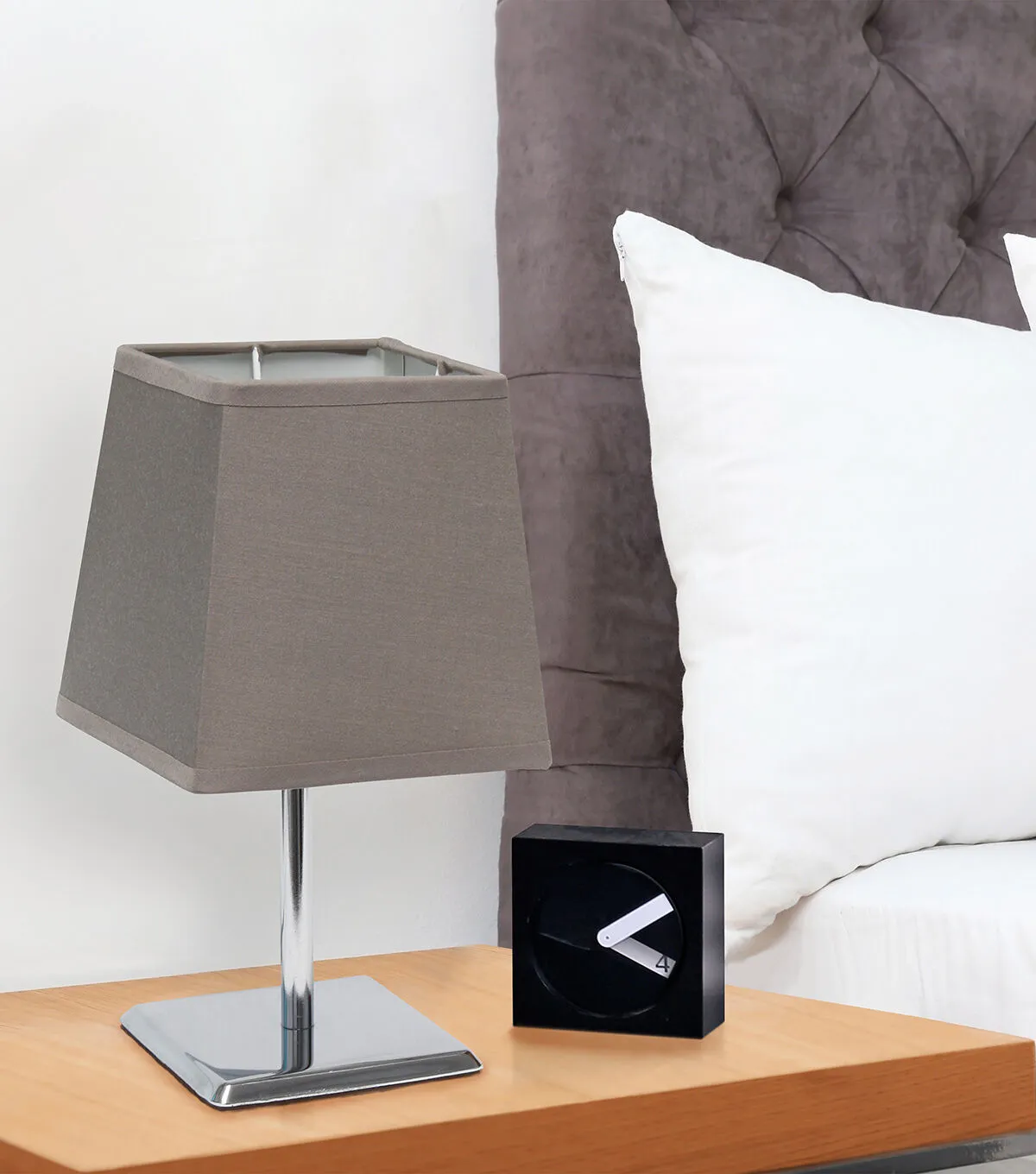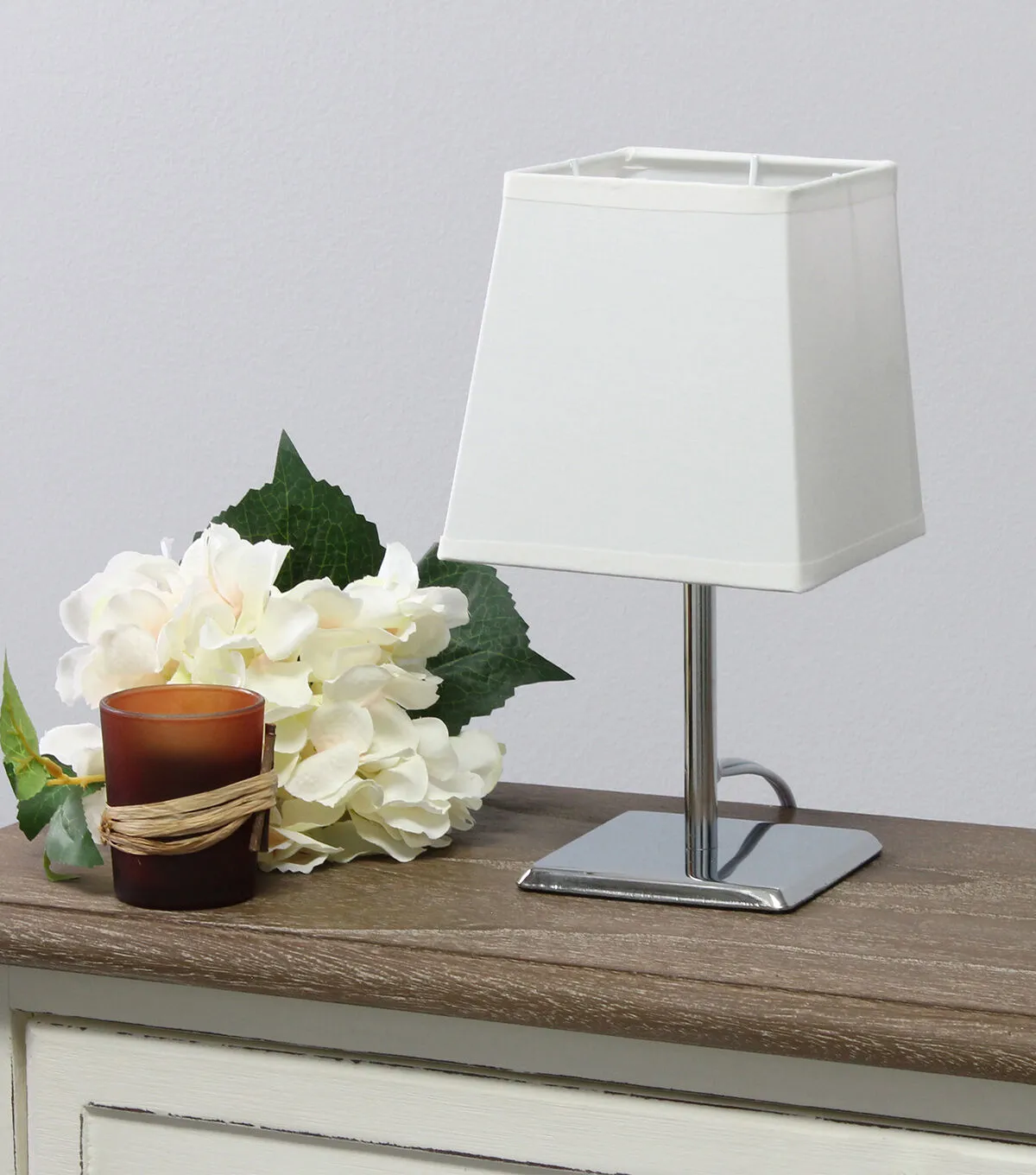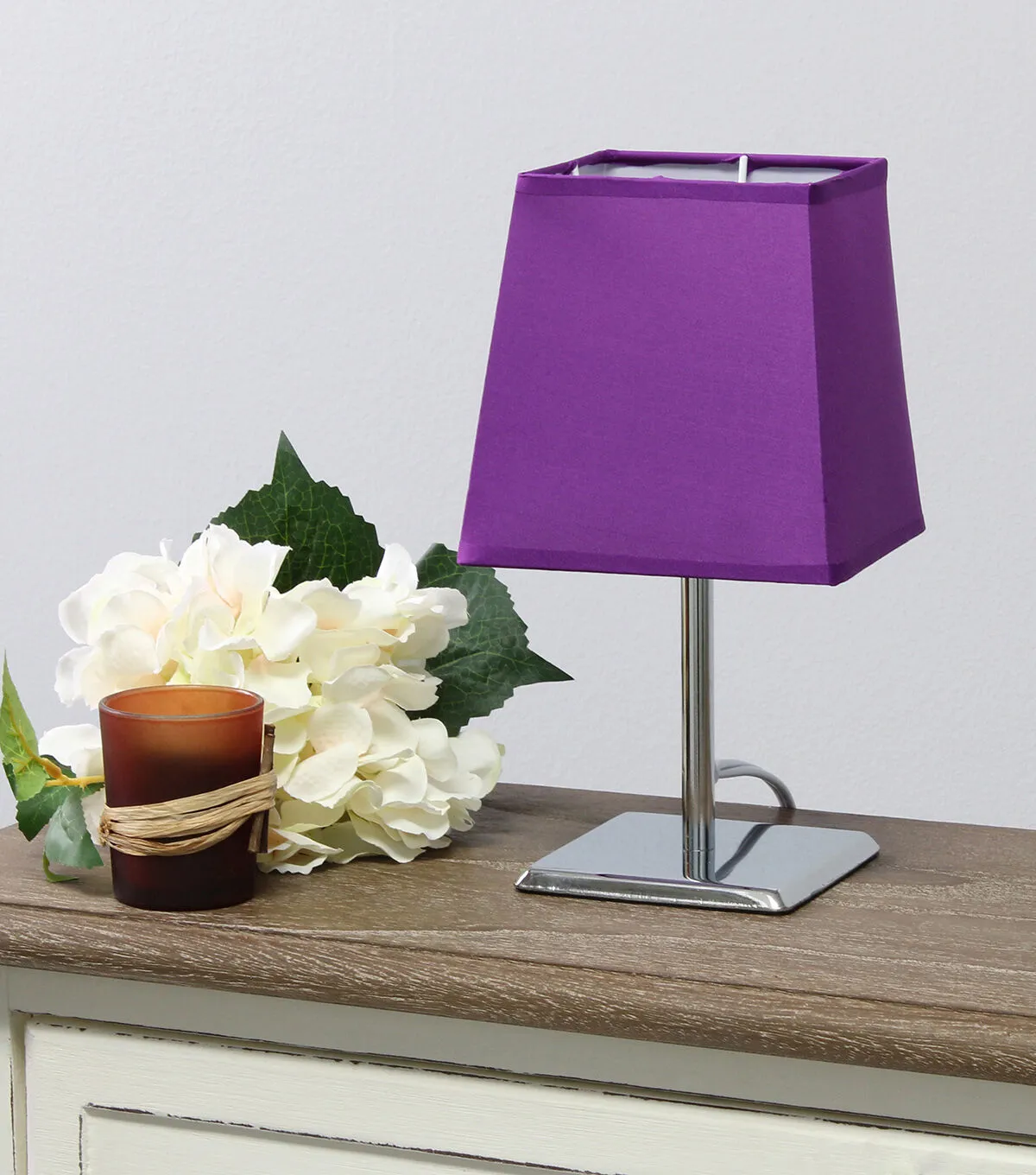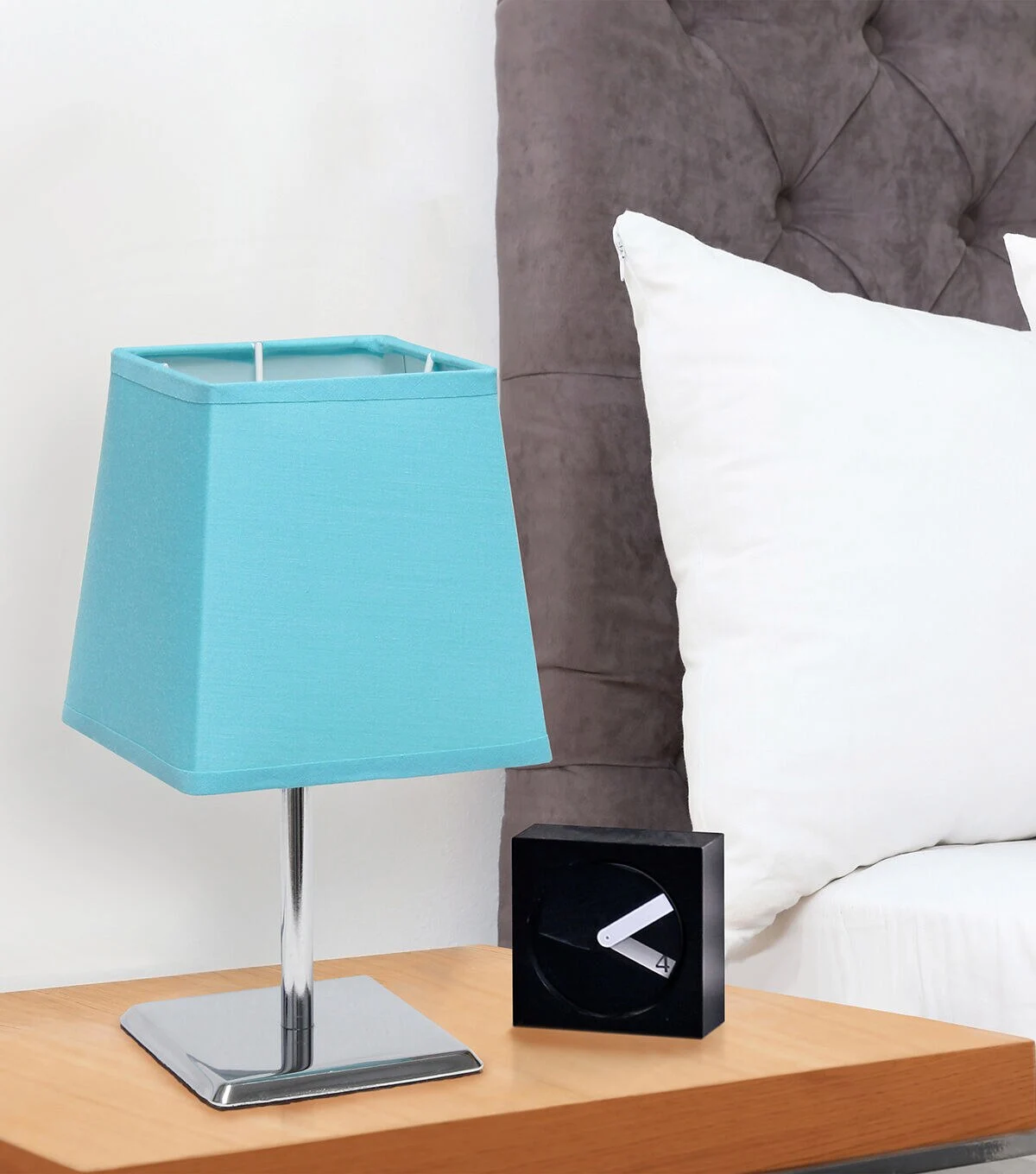 A lovely, inexpensive, and practical table lamp to meet your basic fashion lighting needs. This mini lamp features a chrome base and fabric shade. Perfect for living room, bedroom, office, kids room, or college dorm!