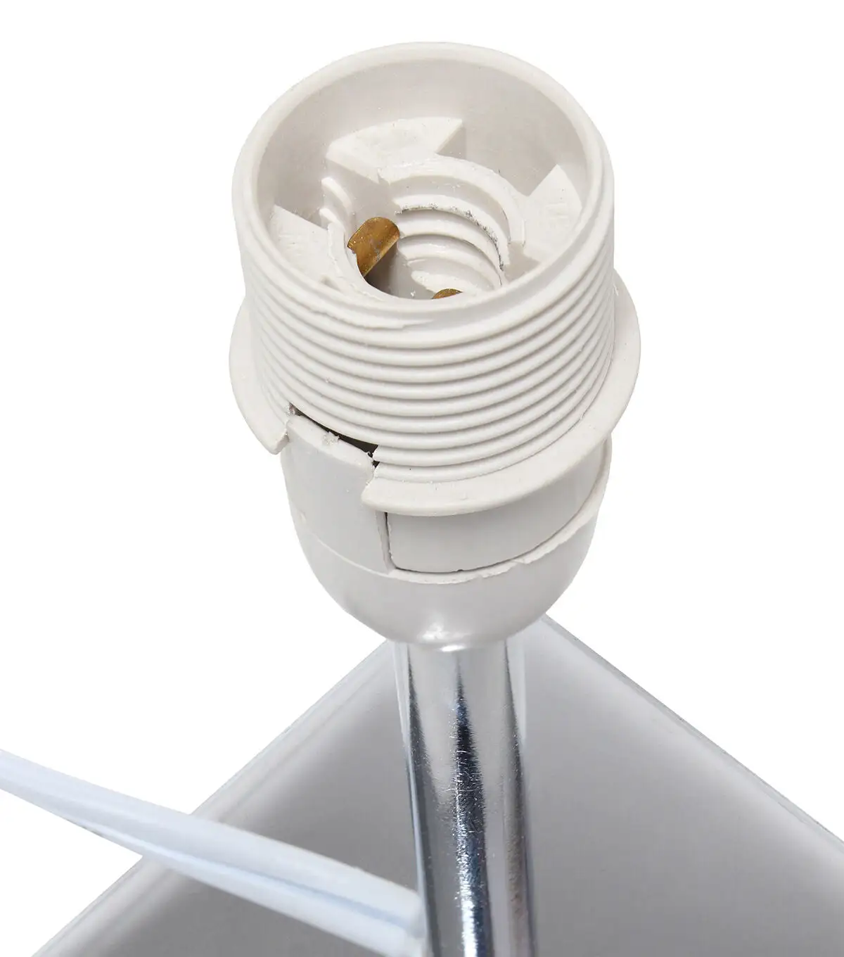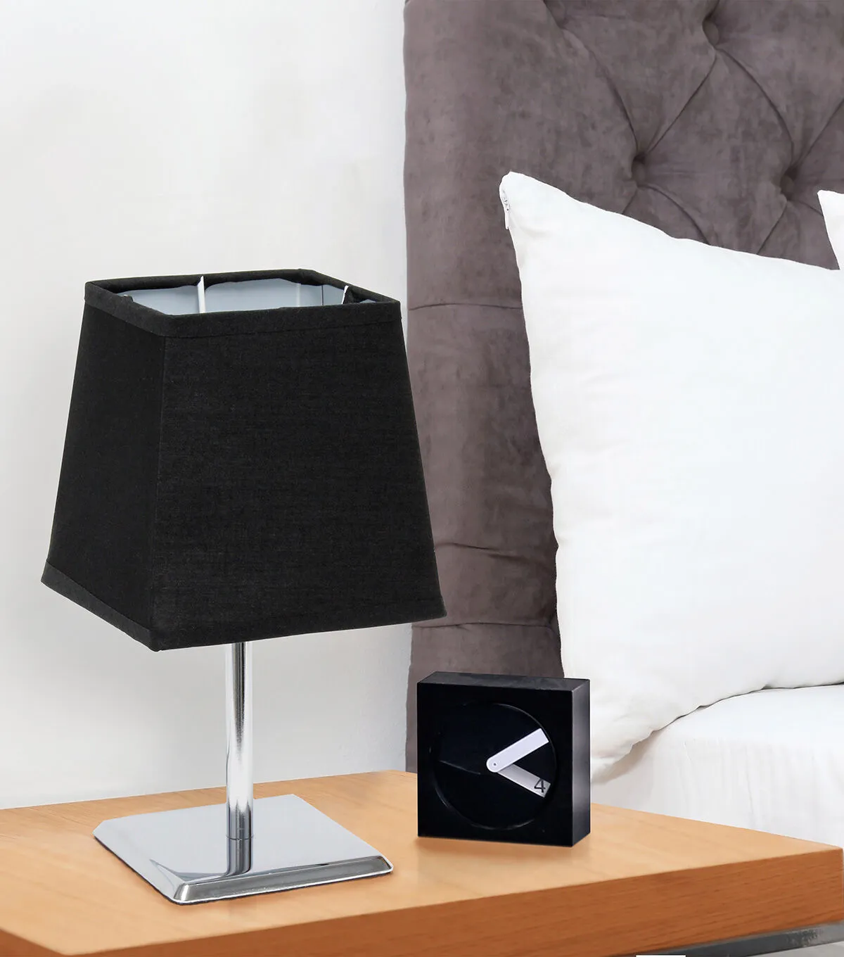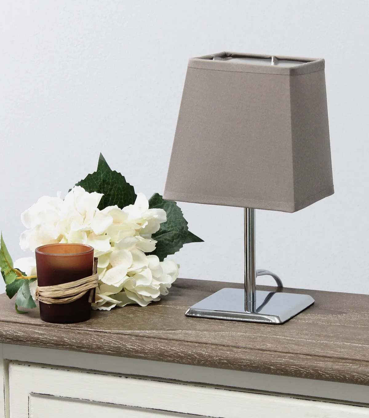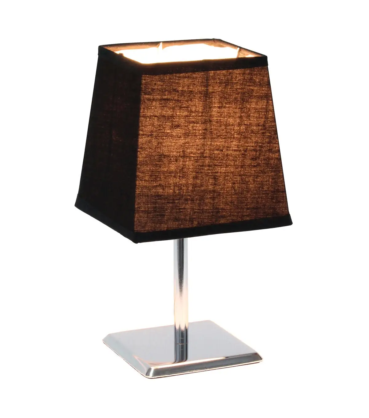 A lovely, inexpensive, and practical table lamp to meet your basic fashion lighting needs. This mini lamp features a chrome base and fabric shade. Perfect for living room, bedroom, office, kids room, or college dorm!
