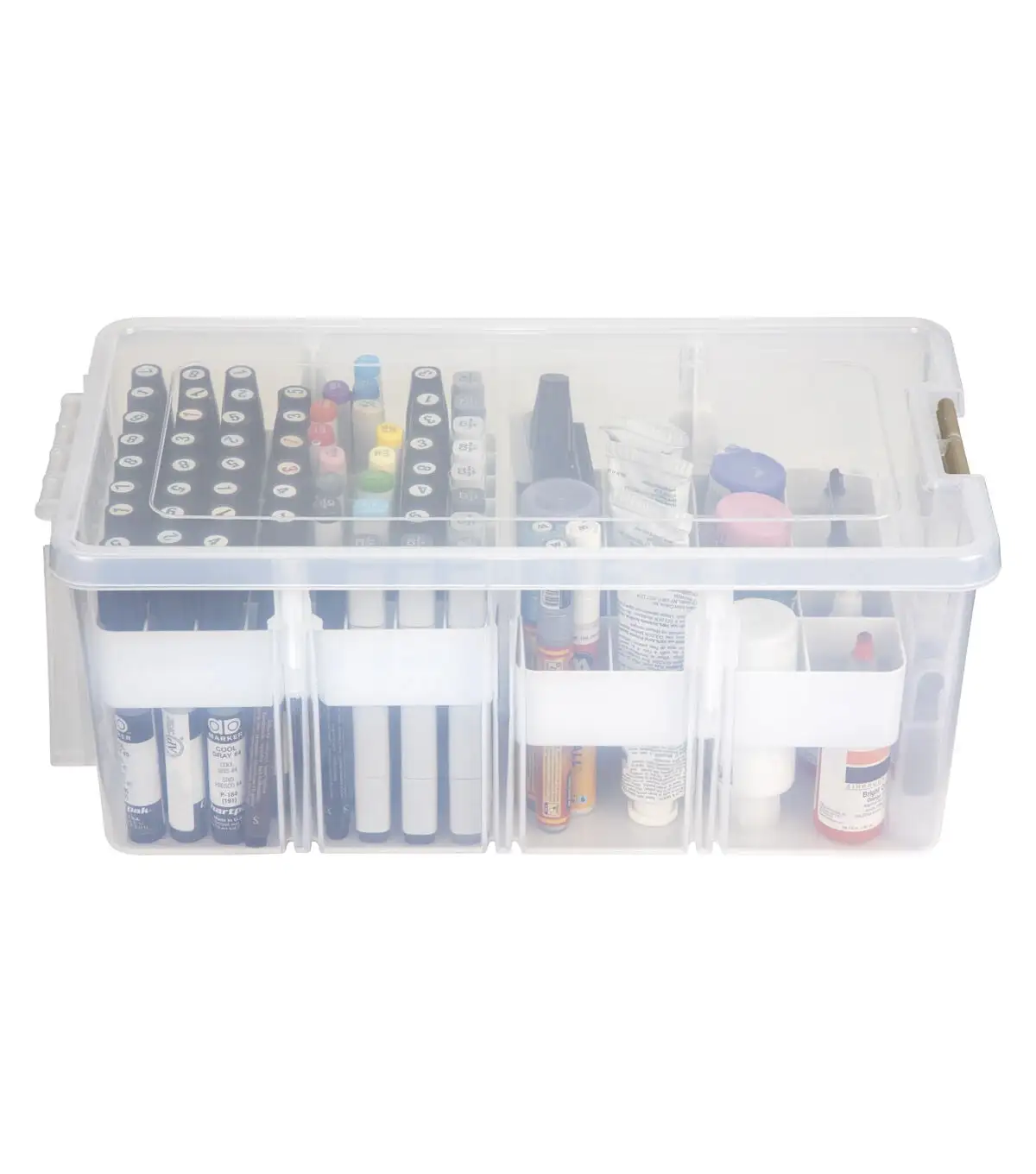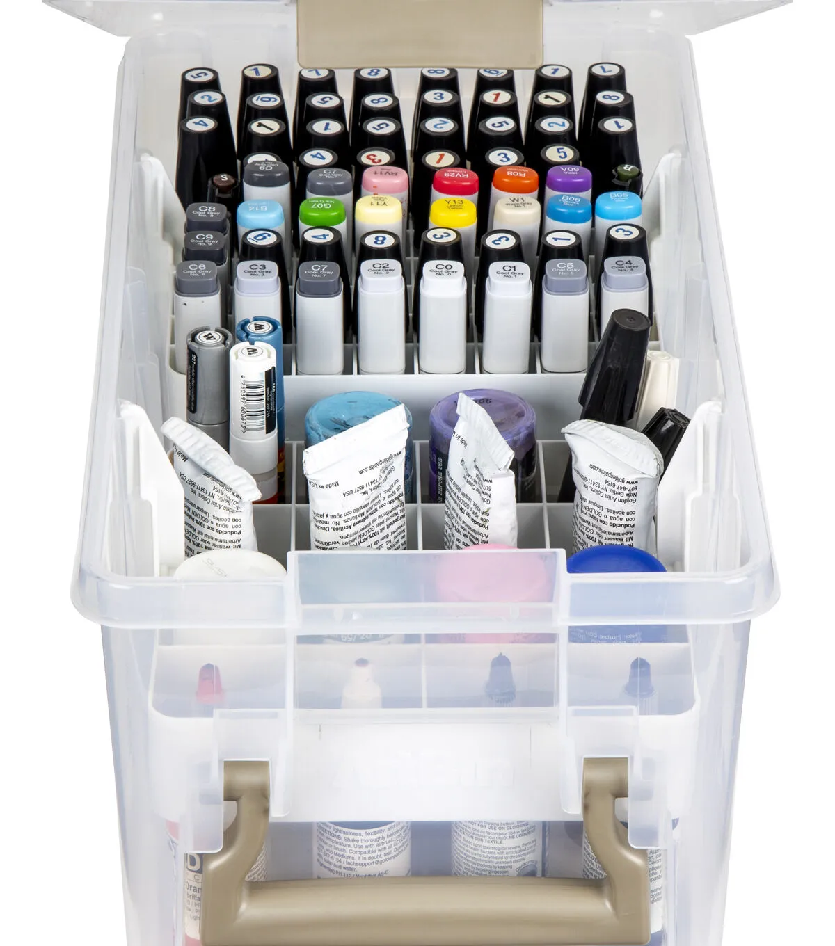 The Super Semi Satchel comes with one (1) Marker Storage Tray and one (1) accessory tray. Both of these trays work great for a Fine Artist who is looking to organize their space! The Marker Storage Tray allows you to organize your marker collection all in one contained space. While the Accessory Tray allows you to organize items like paint bottles, paint tubes, or large markers.