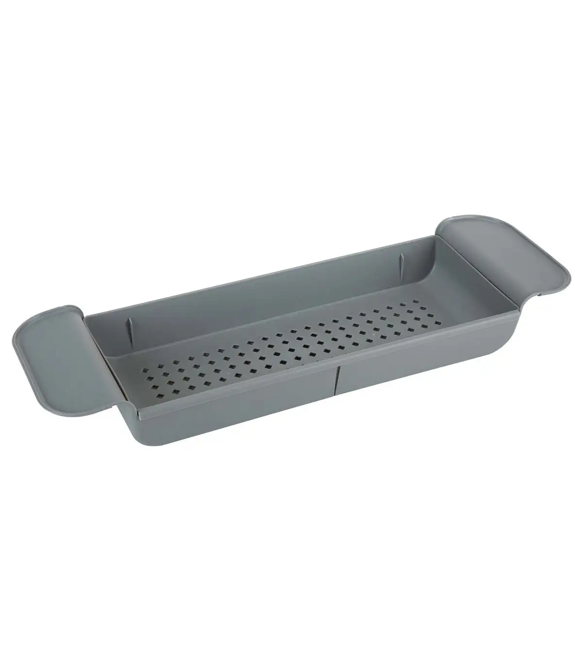 Neatly keep your bathtub tidy with the Bath Bliss Expandable Non-Slip Bathtub Caddy. Conveniently fits across a standard bathtub for storage without having to drill or mount into walls. The caddy is expandable so that you can customize it to fit in your tub. The design is perfect for holding loofahs, razors, washcloths, and bath accessories. This caddy creates added storage in your bathroom and adds style and function.