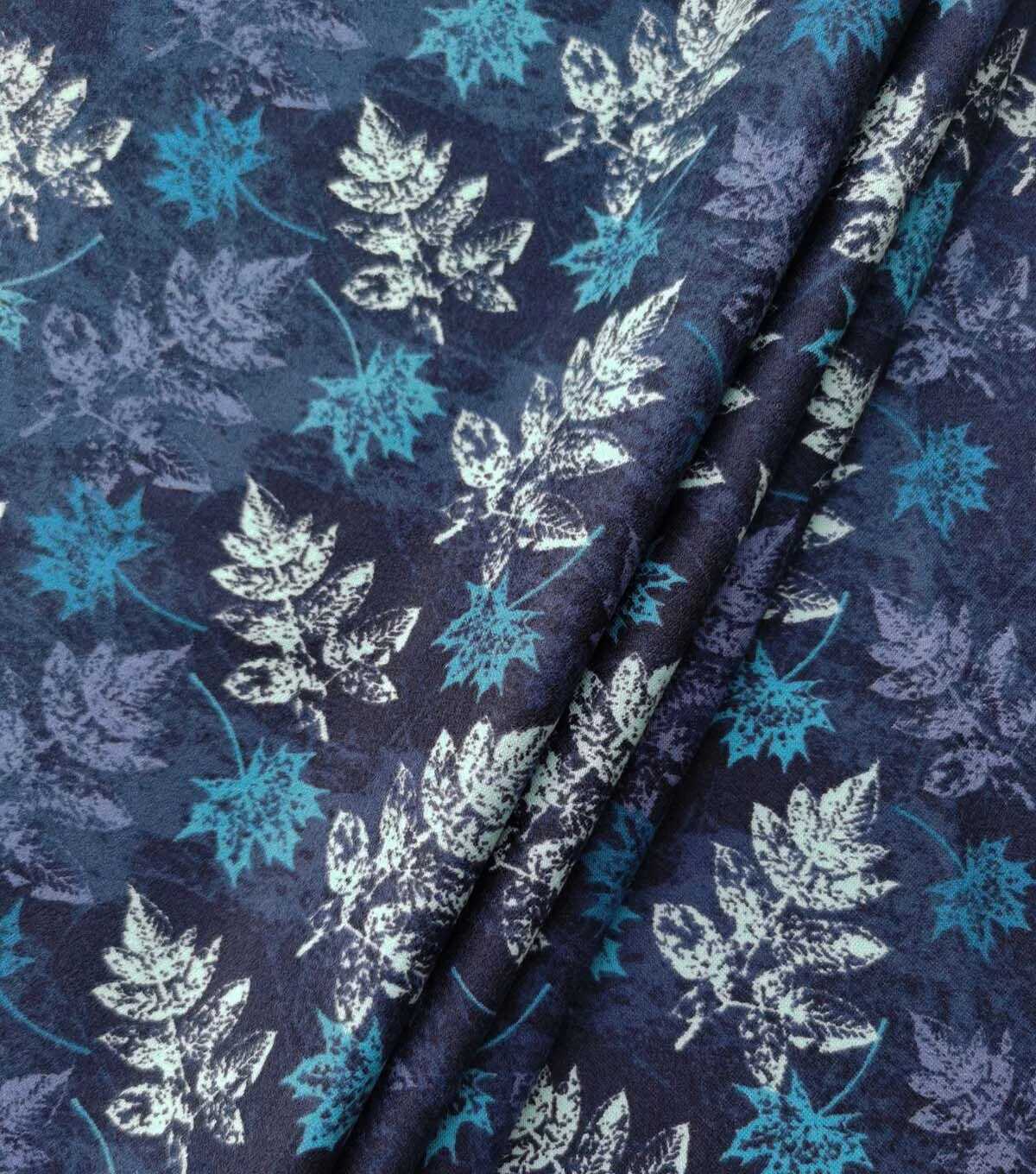 Blue Textured Leaves Luxe Flannel Fabric