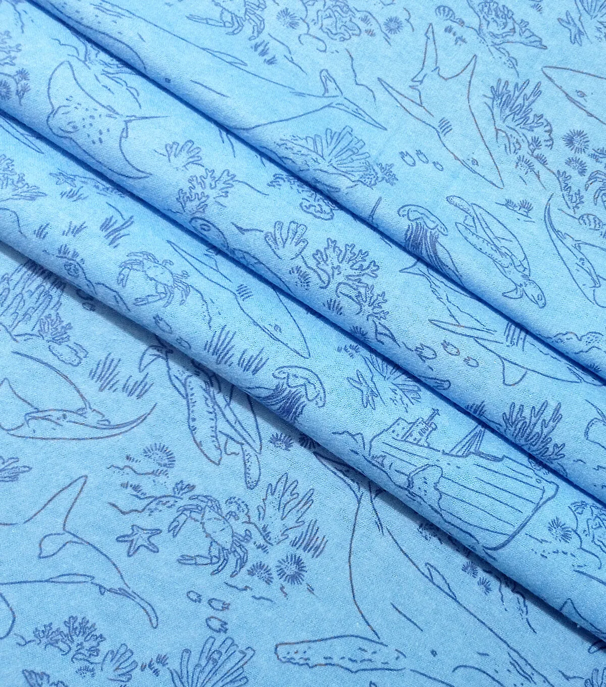 Blue Underwater Outline Super Snuggle Flannel Fabric
