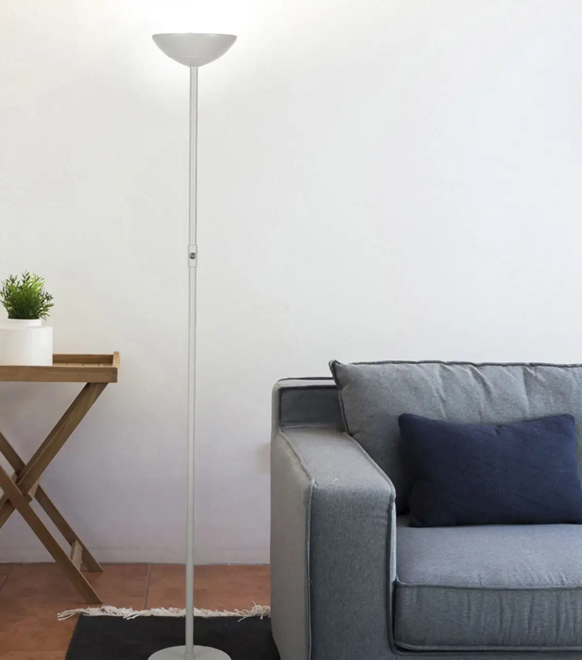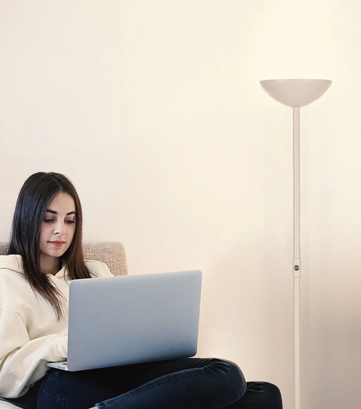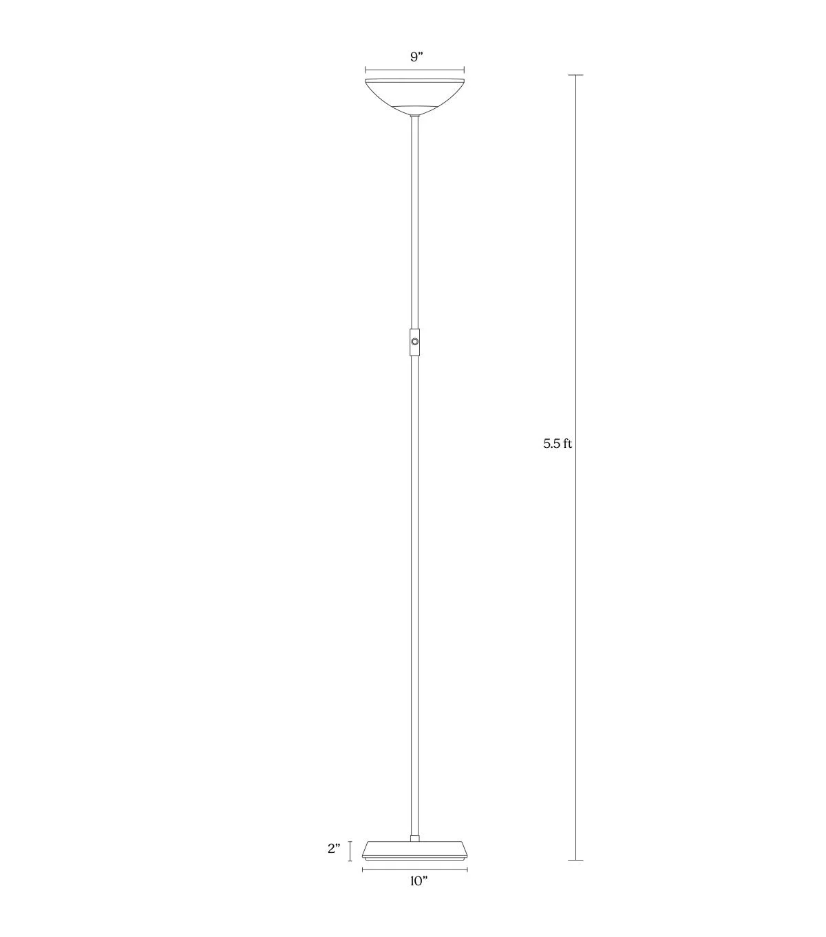 Blazing bright enough to be the only lighting source needed in your bedroom, living room, or office, Brightech's SkyLite lamp efficiently solves your lighting needs. Featuring 1750-Lumens, a heavy/sturdy base, a pole standing 66' tall, and a light 9' in diameter, Brightech's Skylite is lightweight, slender, and can easily fit in narrow spaces or any room in your house without taking up too much space. The built-in dimmer allows you to set the light according to your task or mood, and it stays cool to the touch so that you do not burn yourself when you touch it to reposition the light. The modern minimalist design makes for a perfect addition to your bedroom, living room, or office!
