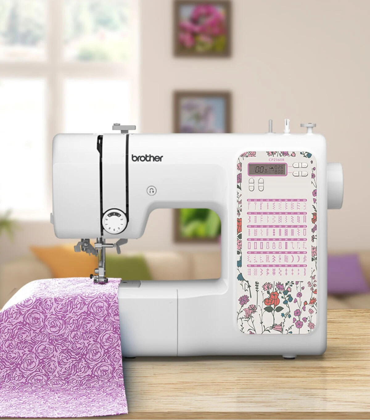 Enjoy a full range of features in a compact, durable and rose floral footprint with the CP2160R computerized sewing machine. The CP2160R comes with 60 built-in stitches, seven auto-size one-step buttonholes, and selecting one of the attractive built-in stitches is as simple as pressing a button with the easy stitch selector. A sharp LCD screen and advanced needle threading system, which makes threading easy, add to the machine's highlights. Utilize drop feed dogs and try free-motion sewing or the free arm capability to make sewing cuffs, sleeves, and skinny jeans a breeze. The CP2160R allows for virtually effortless sewing on denim, tweed, and other thick fabrics with the exceptional feed system and fixed needle bar. Also included are seven first-rate sewing feet (a Zigzag foot, a Buttonhole foot, a Zipper sewing foot, a Button sewing foot, Overcasting foot, Blind stitch foot, and a Monogramming foot) to help you achieve a variety of sewing techniques. Complete with a Quick-Set bobbin and a super bright LED-lit work area, the affordable CP2160R will have you creating DIY projects and garments in no time.