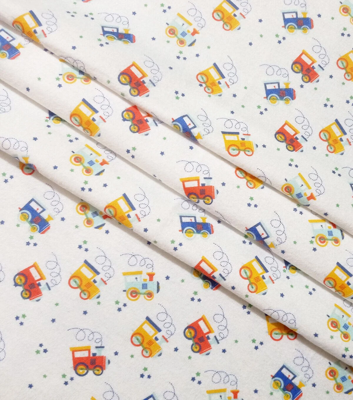 Get with Choo Choo Trains on White Super Snuggle Flannel Fabric