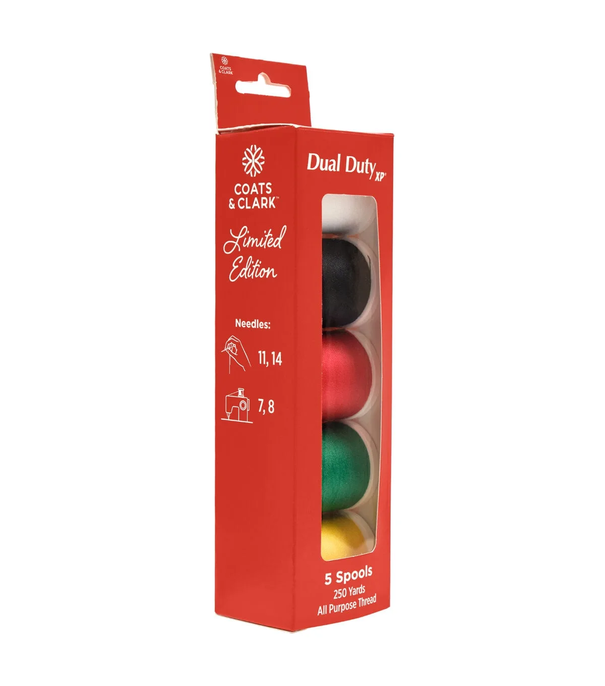 Create wonderful holiday projects with various adorable patterns, using the Coats and Clark Dual Duty XP General Purpose Thread. This exclusive thread pack contains 5 spools of 250 Yard Coats & Clark thread in White, Black, Atom Red, Kelly Green and Spark Gold. Made with advanced technology, this thread features polyester-wrapped core-spun construction that makes sewing easier. The general purpose thread comes with a smooth finish and adds soft texture to your garments, linens and home decor accessories. Ideal for hand-sewing and machine-sewing both, this general thread is a must-have for all of your holiday sewing projects and beyond.