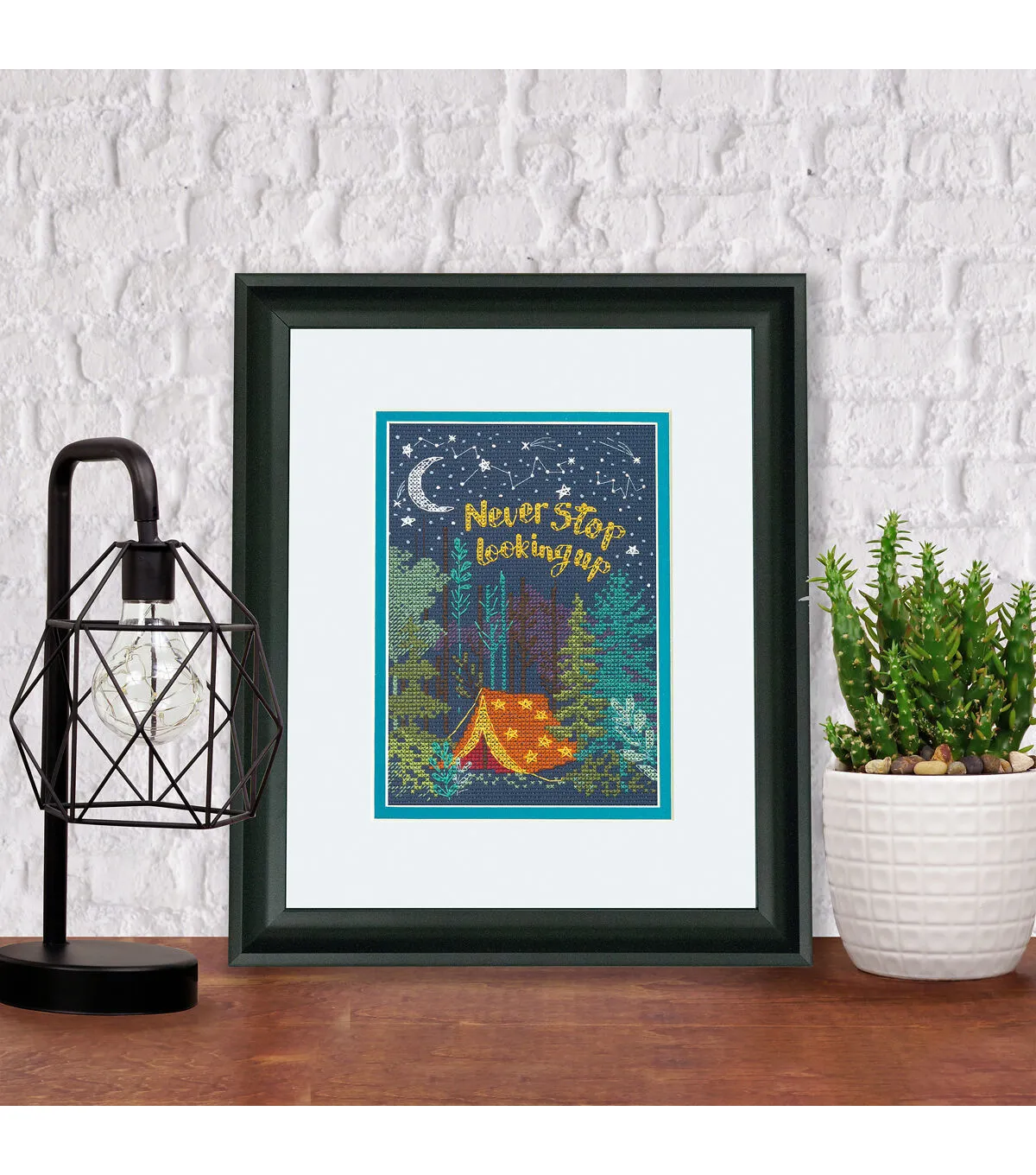 What can be more calming and rejuvenating than camping under the trees on a beautiful starry night! The encouraging counted cross stitch Camping Adventure by Dimensions is ideal for any outdoor enthusiast. Finished size: 5' x 7'. Design Jennifer Ellory, courtesy of Pink Light Studio.