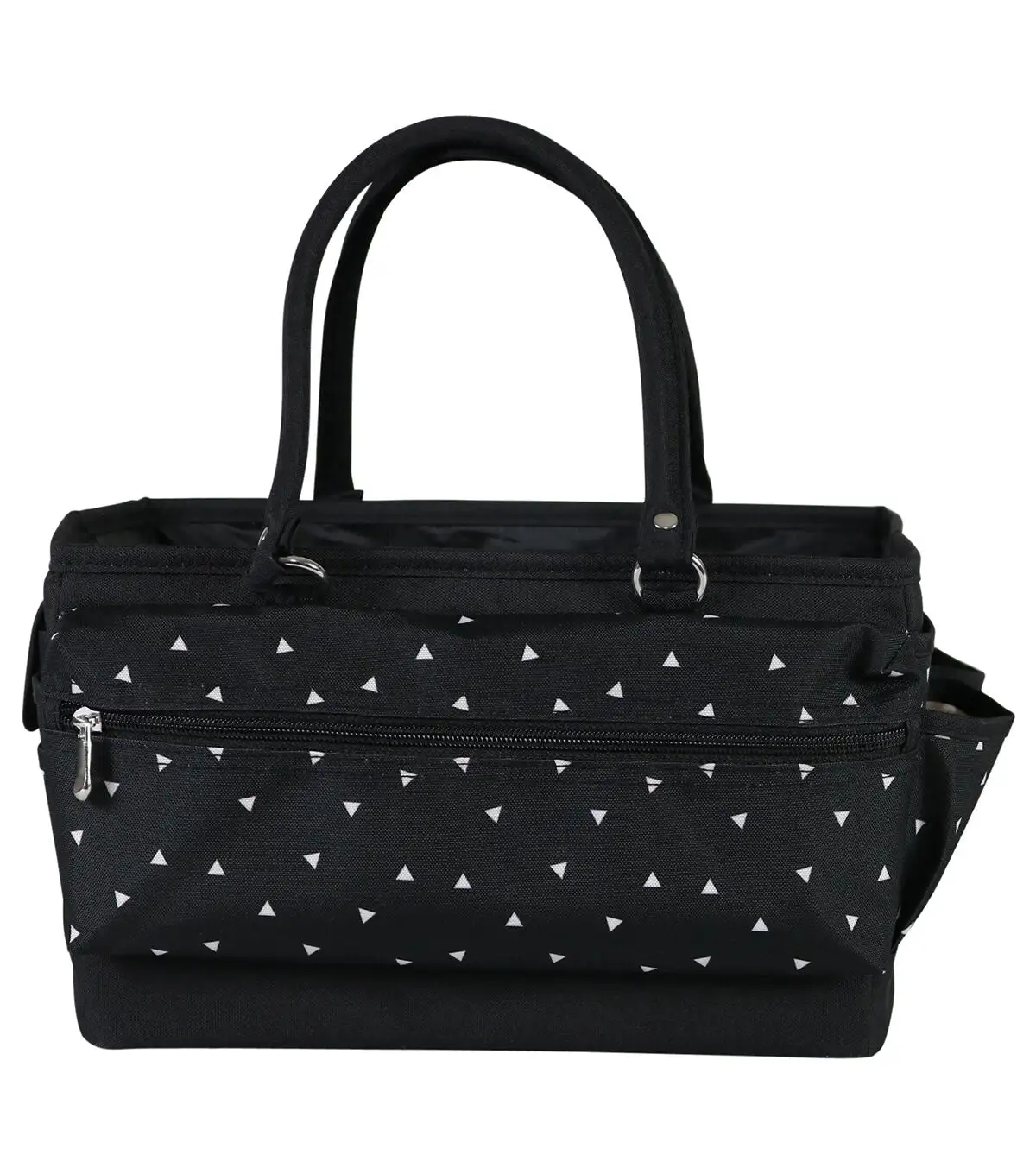 The Everything Mary Deluxe Store & Tote Organizational Bin comes in several timeless prints. Each tote is constructed from high-quality 300 deniers and features embossed chrome logos and zippers, giving a classy and elegant look. This higher-end polyester ensures your craft supplies are safe and long-lasting. With two reinforced strong handles, you can bring this tote anywhere. Different slots, pen loops, and pockets provide multiple options for your home, garage, craft, or nursery.
