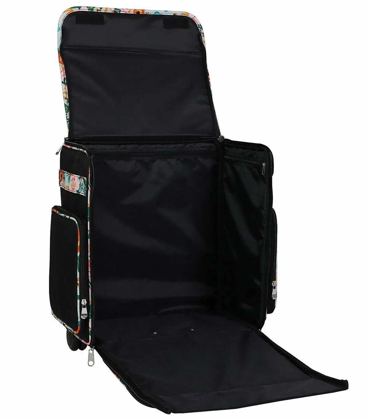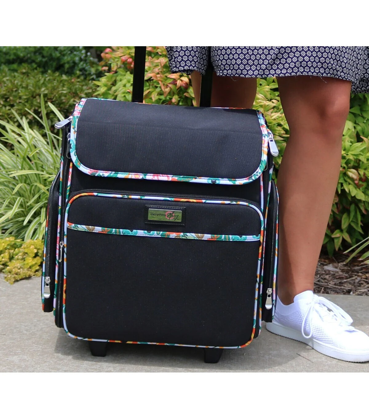 The Everything Mary Rolling Scrapbook Case with Locking Handle is perfect for all your scrapbooking storage needs. Finding space won't be an issue with three outside zip pockets, 4 inner zipper pockets, and a large main compartment storage space. With an adjustable telescoping handle and inline wheels, this bag is perfect for traveling.