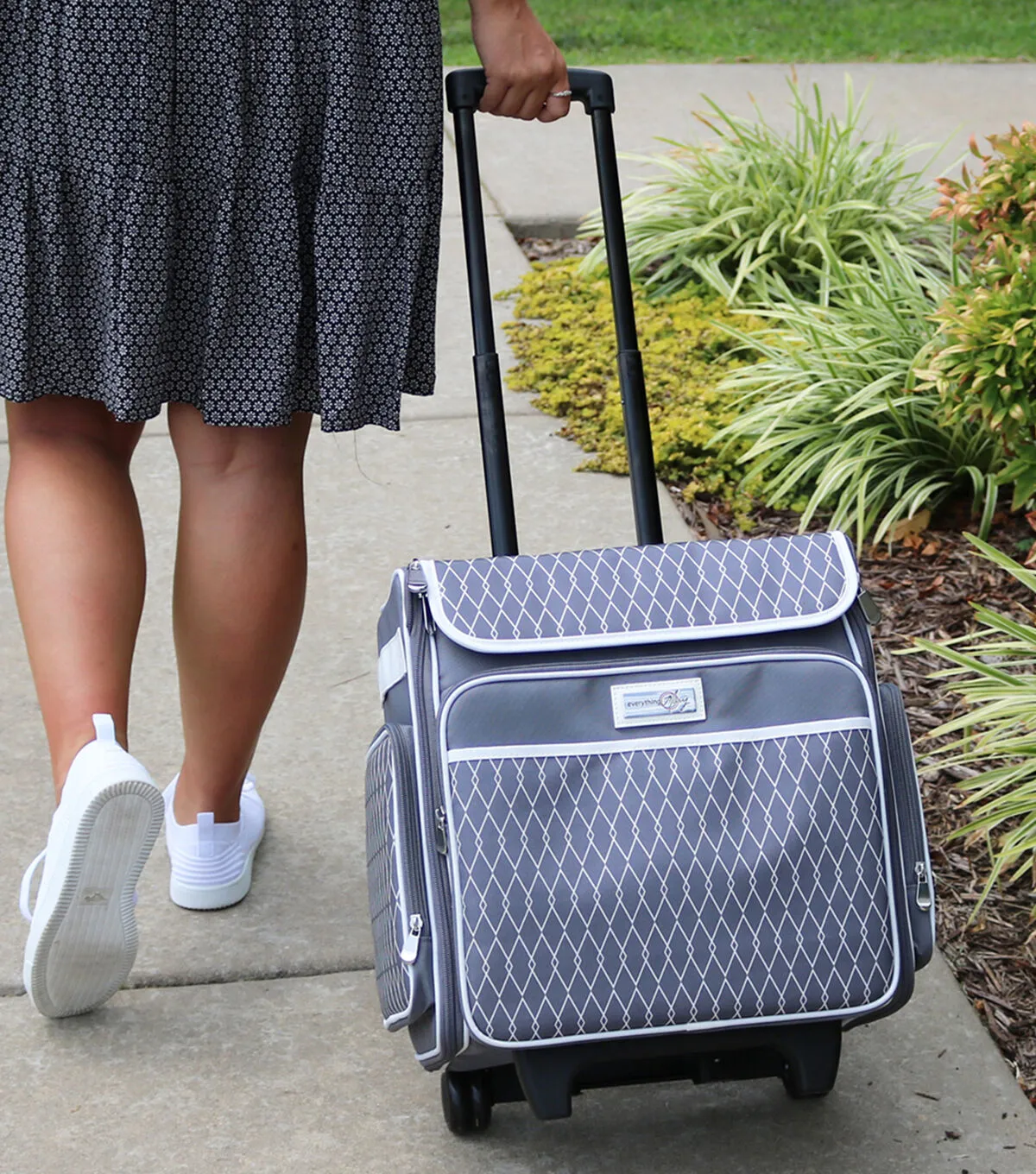 The Everything Mary Rolling Scrapbook Case with Locking Handle is perfect for all your scrapbooking storage needs. Finding space won't be an issue with three outside zip pockets, 4 inner zipper pockets, and a large main compartment storage space. With an adjustable telescoping handle and inline wheels, this bag is perfect for traveling.
