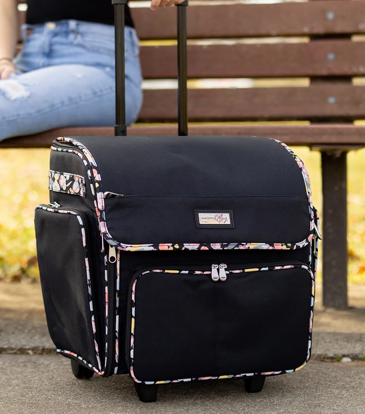 Everything Mary 18 Floral on Black Collapsible Rolling Craft Bag