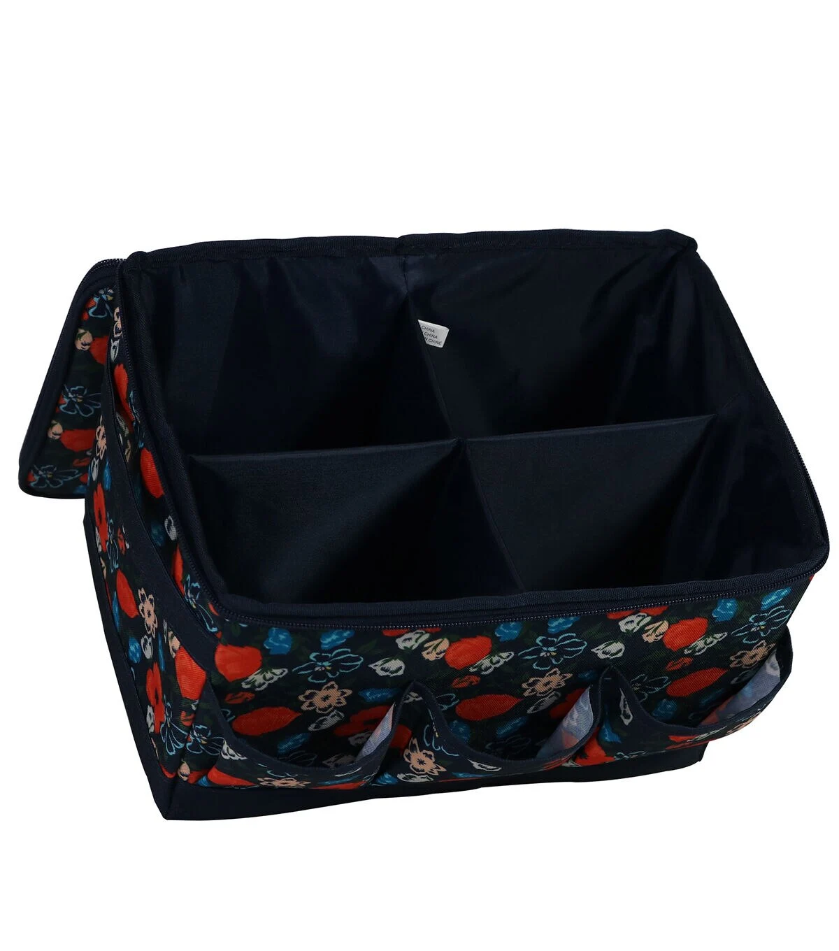 The Everything Mary Craft Organizer with Lid - Floral on Navy will make a great storage solution for your art and craft essentials. This organizer flaunts a navy shade and an attractive floral print in contrasting hues. It is designed with four compartments and exterior pockets that you can use to store scissors, stickers and more. You can also gift it to someone who is a craft enthusiast.