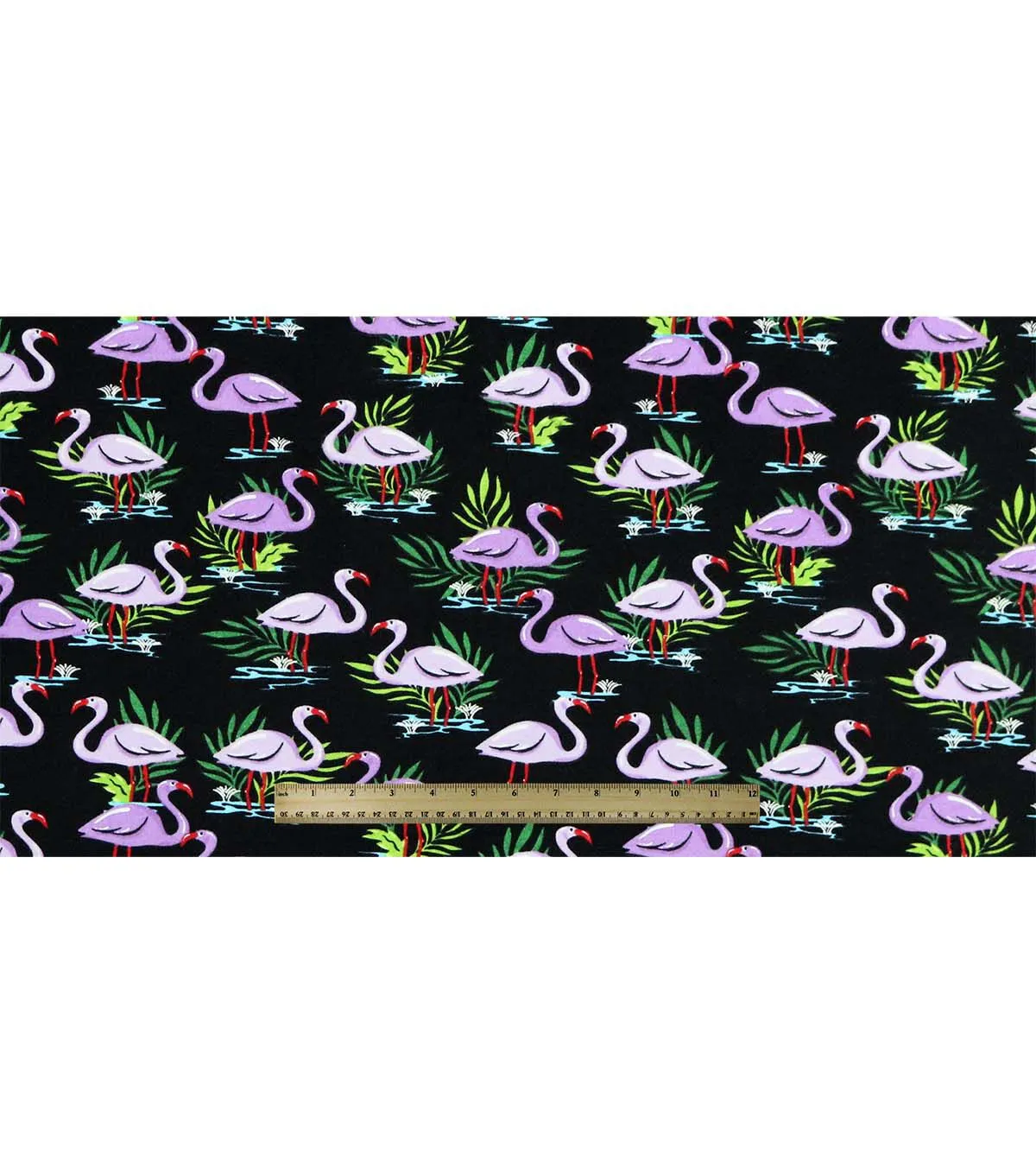 Bring a touch of whimsy to your next sewing project with our Flamingos on Black Super Snuggle Flannel Fabric. Made from 100% cotton, this fabric is perfect for creating blankets, and more. The black background provides the perfect backdrop for the playful pink flamingos, making this fabric a fun addition to any project.