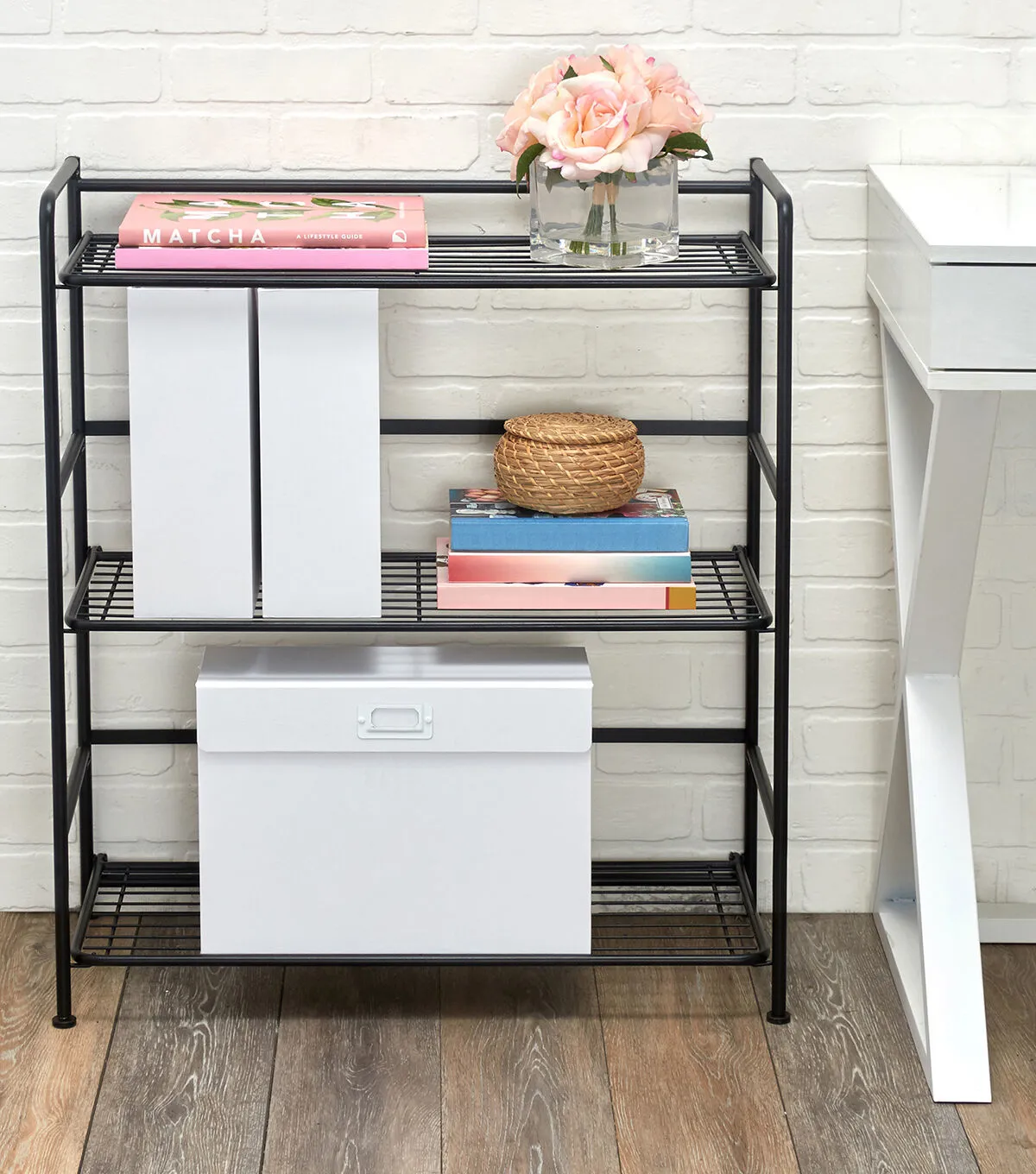 FlipShelfprovides effortless style and versatile storage in seconds. Don't let the flat box fool you, FlipShelf, the superhero of shelving, transforms quickly and instantly into an organizational solution. Let FlipShelfhelp you conquer clutter and supersize your storage space.