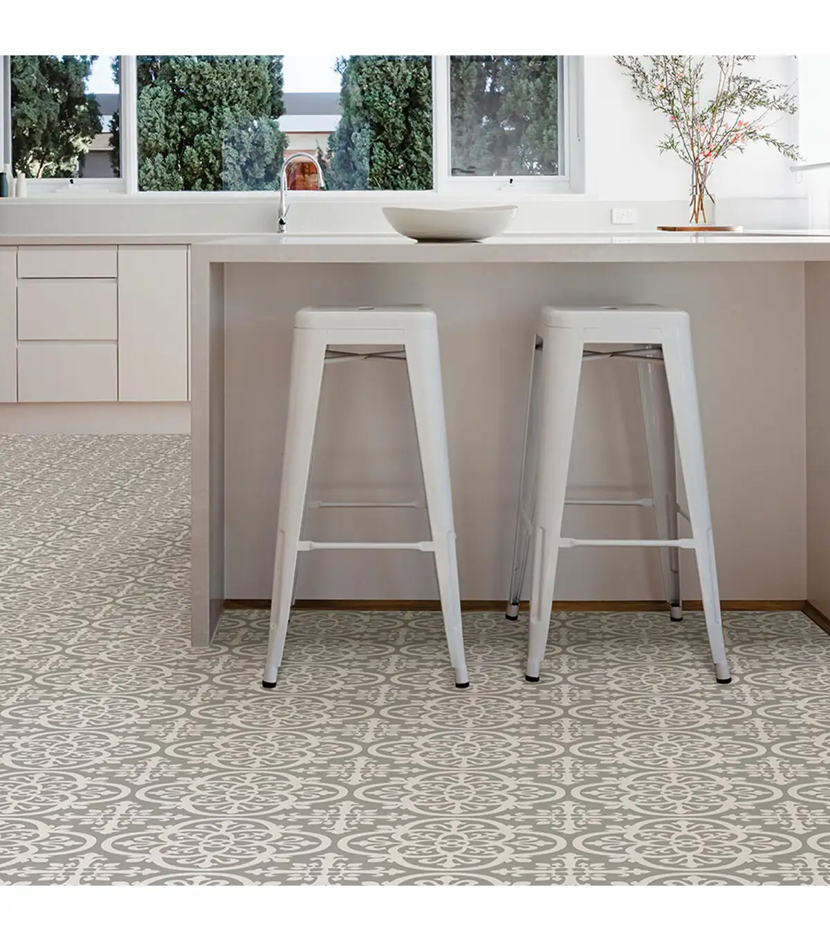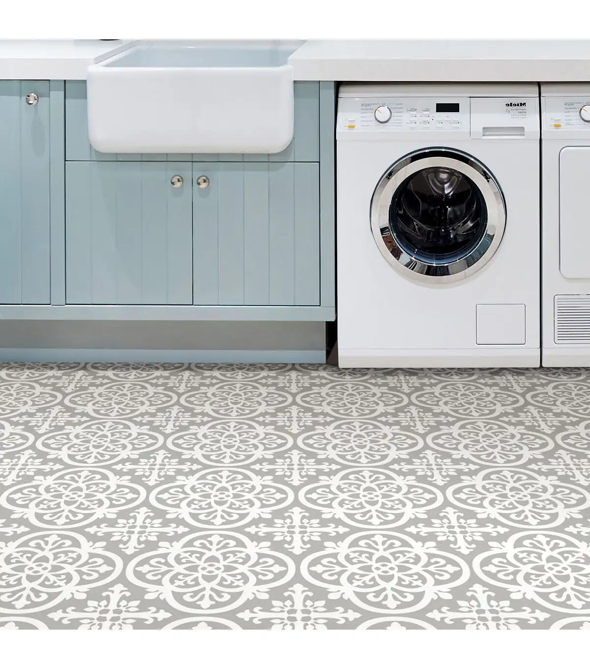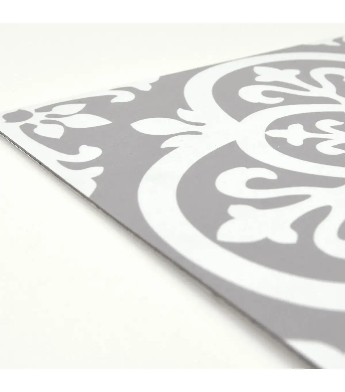 Make a statement with these bold black and white floor tiles. The gothic-style motif is simply stunning. Gothic Peel & Stick Floor Tiles contains 10 pieces on 10 sheets that measure 12 x 12 inches. Virgin Vinyl material with a textured low lustre finish and permanent adhesive makes tiles durable; One package contains 10 tiles that each measure .06-in in depth; Each tile measures 12 x 12 inches.
