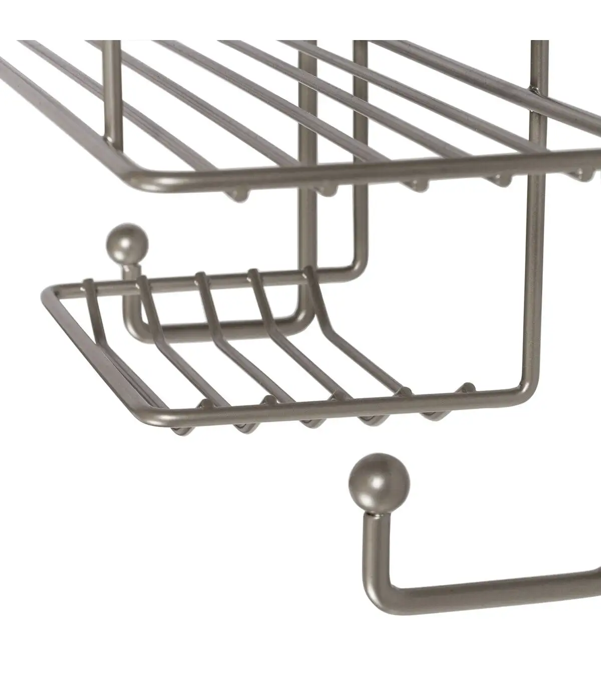 The shower caddy of all shower caddies, this bathroom organizer securely fits on almost any shower head and provides the ultimate shower storage, which eliminates the need for shower shelves or a standing corner shower caddy. Its hooks and soap tray give you plenty of space for all your shower accessories and its suction cups keep it firmly in place.