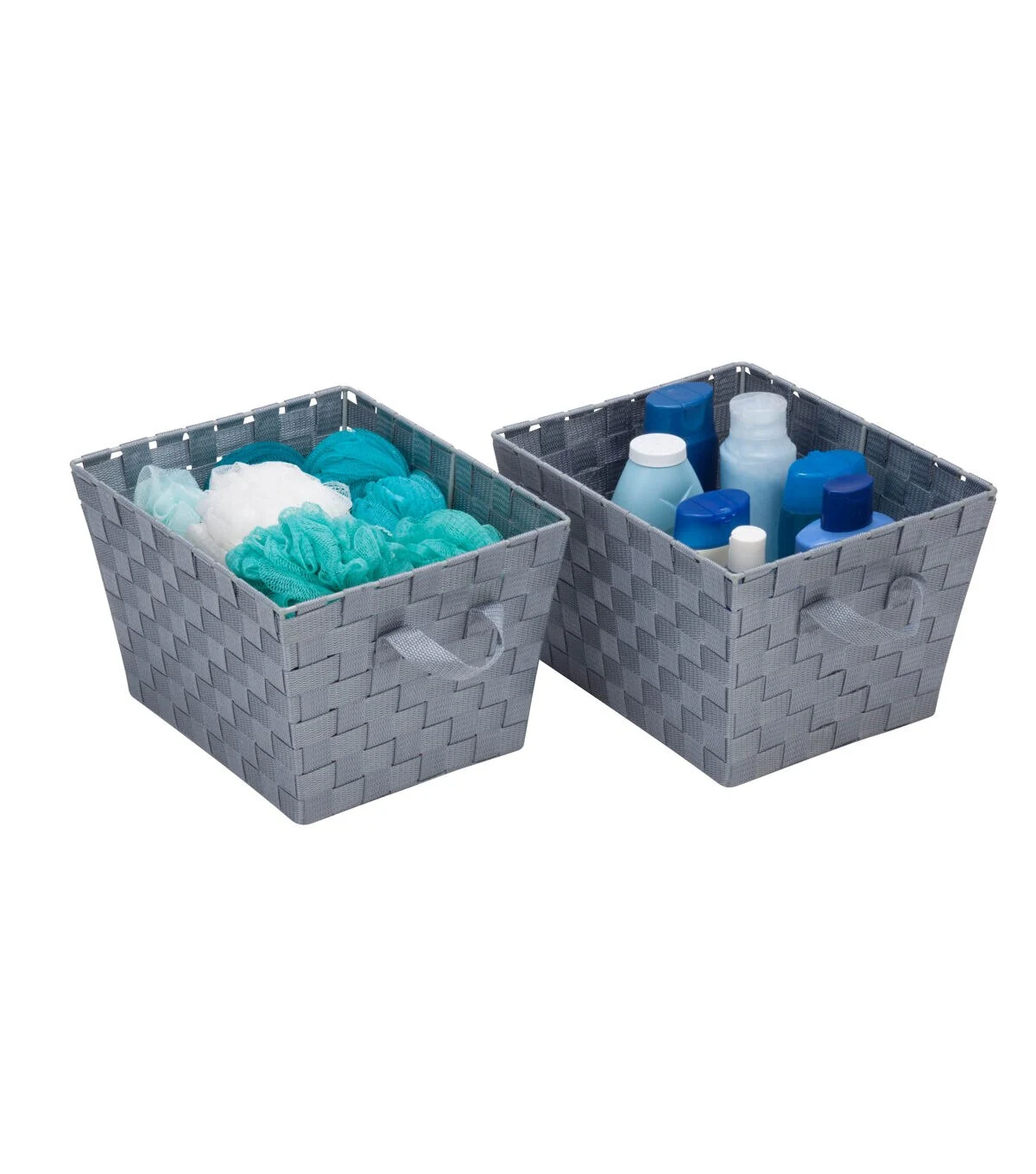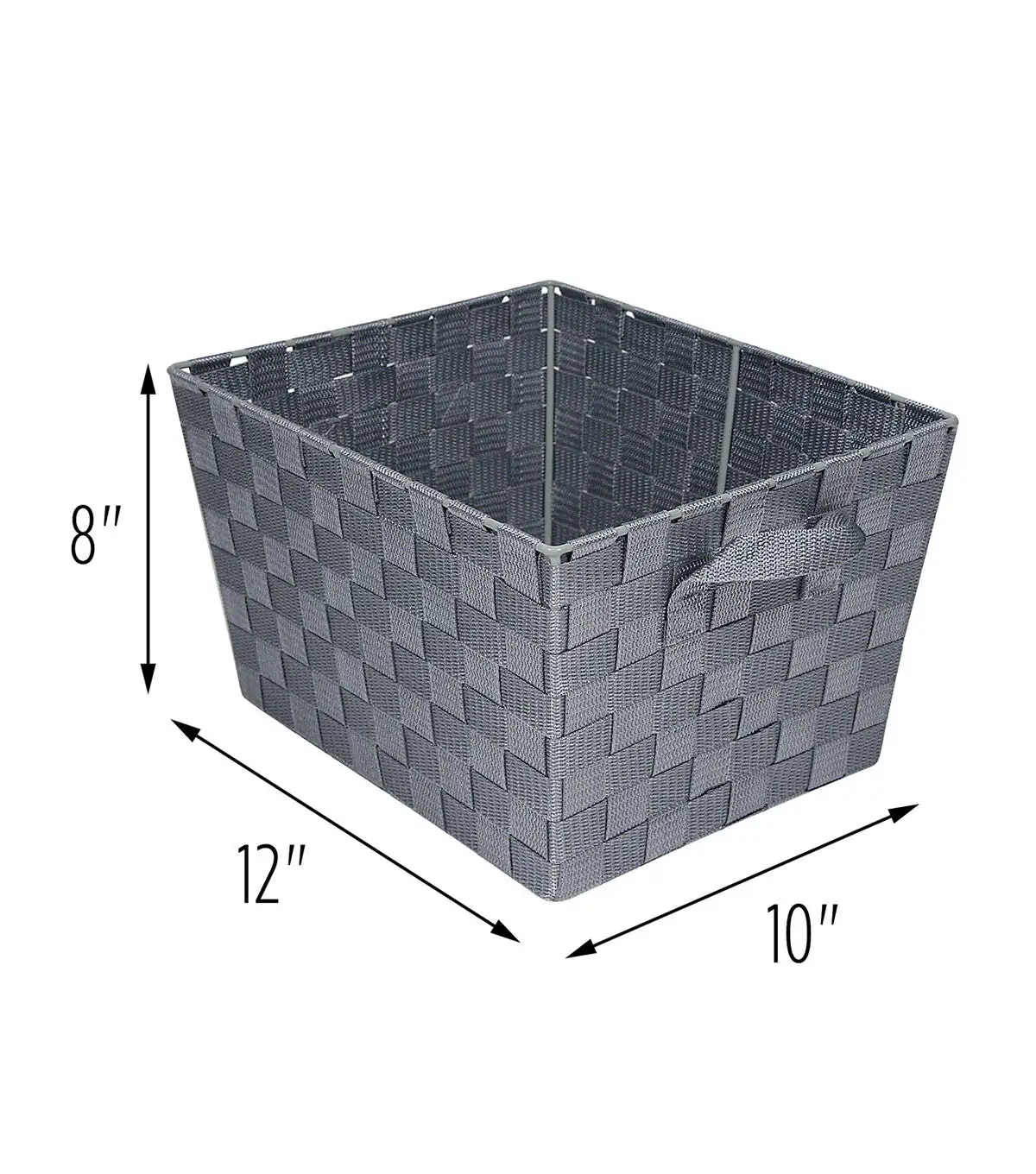 Constructed of durable and easy-to-clean strapping, these baskets add unique style to any room that is in need of some extra storage. And at 12' x 10' x 8', they are large enough for your household essentials but still fit in a closet or on a shelf. Attached handles make carrying the basket simple and convenient. Coordinates with our Honey-Can-Do task-it baskets in other sizes and colors.