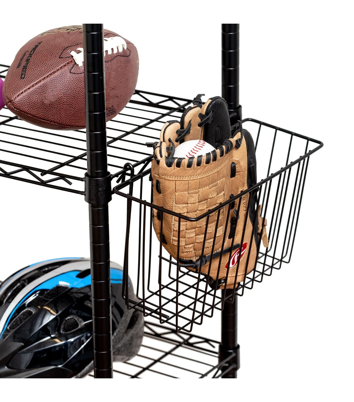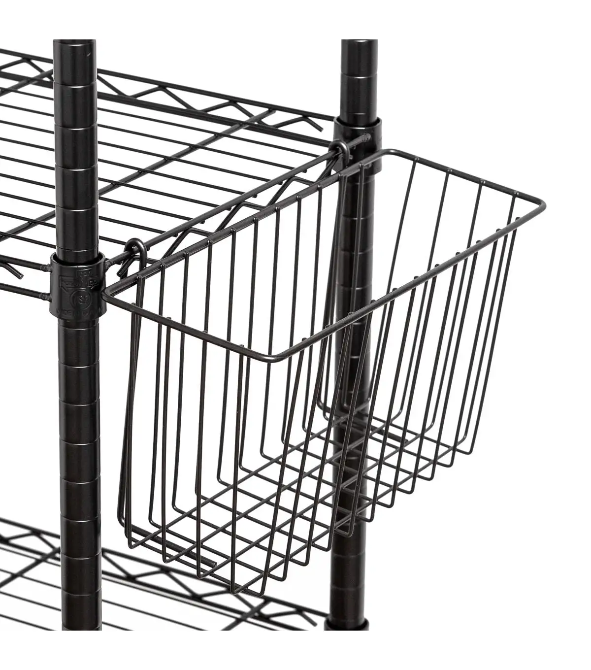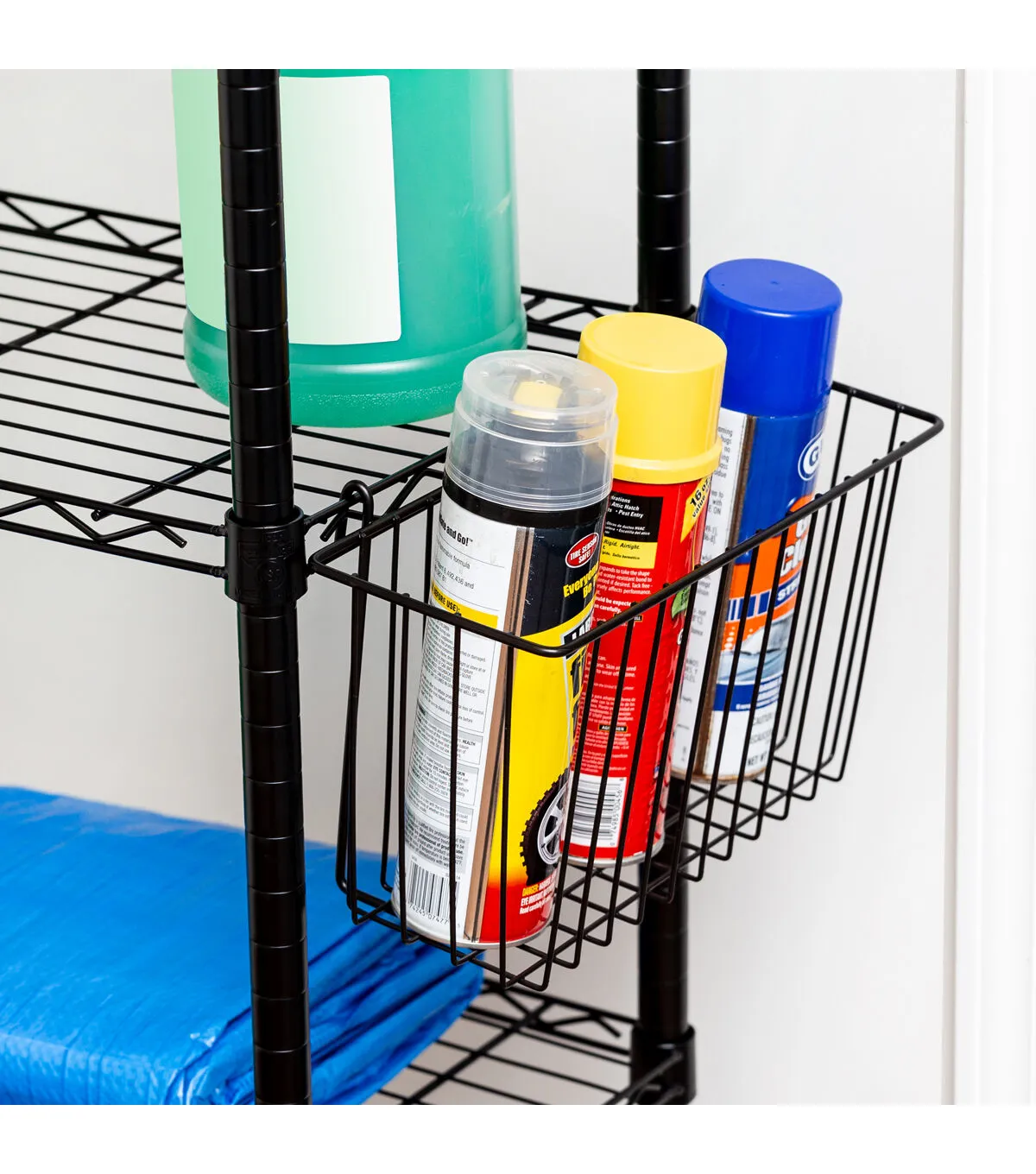 Instantly add extra storage to your existing shelving unit with this convenient accessory basket. Sturdy steel construction ensures this basket will hold up to 50 pounds without fail. Measures 13.39 in L x 5 in W x 7.6 in H.