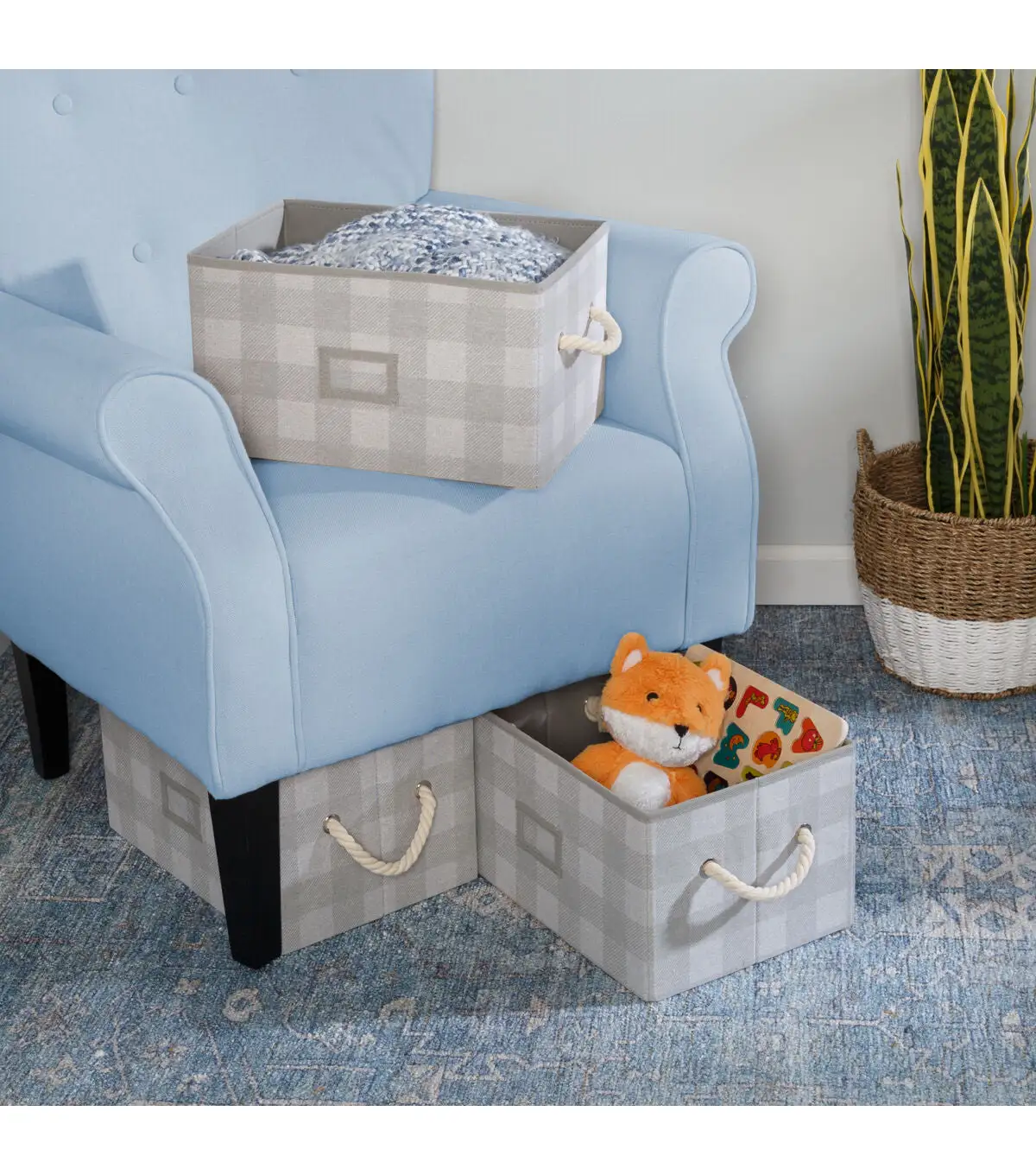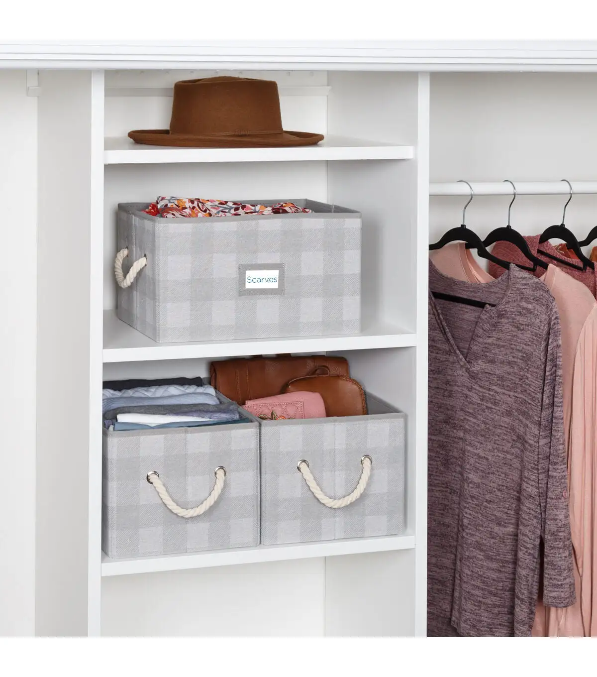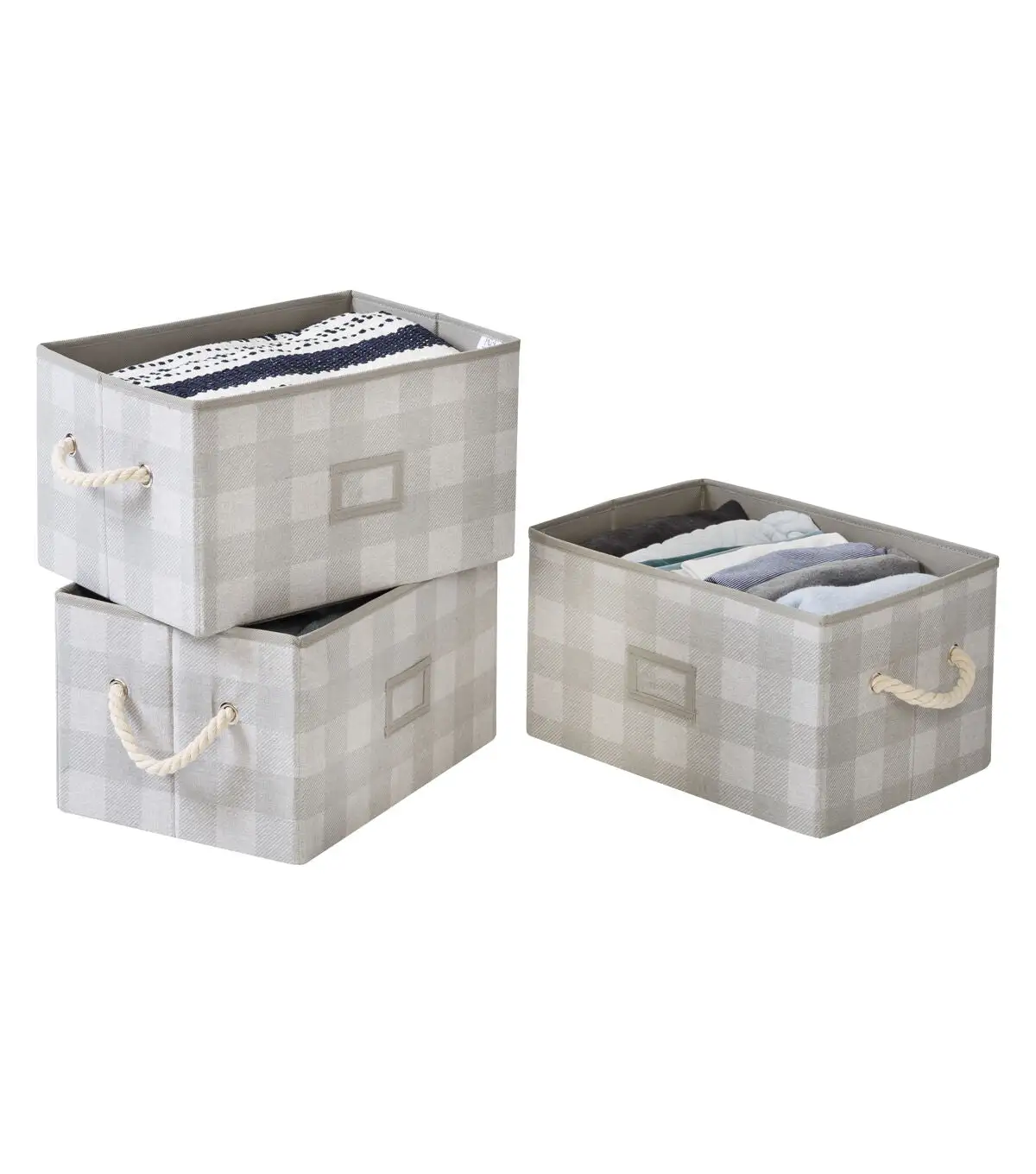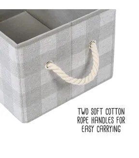 These versatile, large storage bins are perfect for storing clothing, bags, bathing supplies, towels, cleaning supplies, magazines, etc. While large, they are also the perfect size to store on shelves and/or in closets, but also look good and can be left out in the bedroom, bathroom or laundry room. Strong, durable fabric holds up to heavy loads and cotton rope handles allow for easy carrying of bins from room to room.