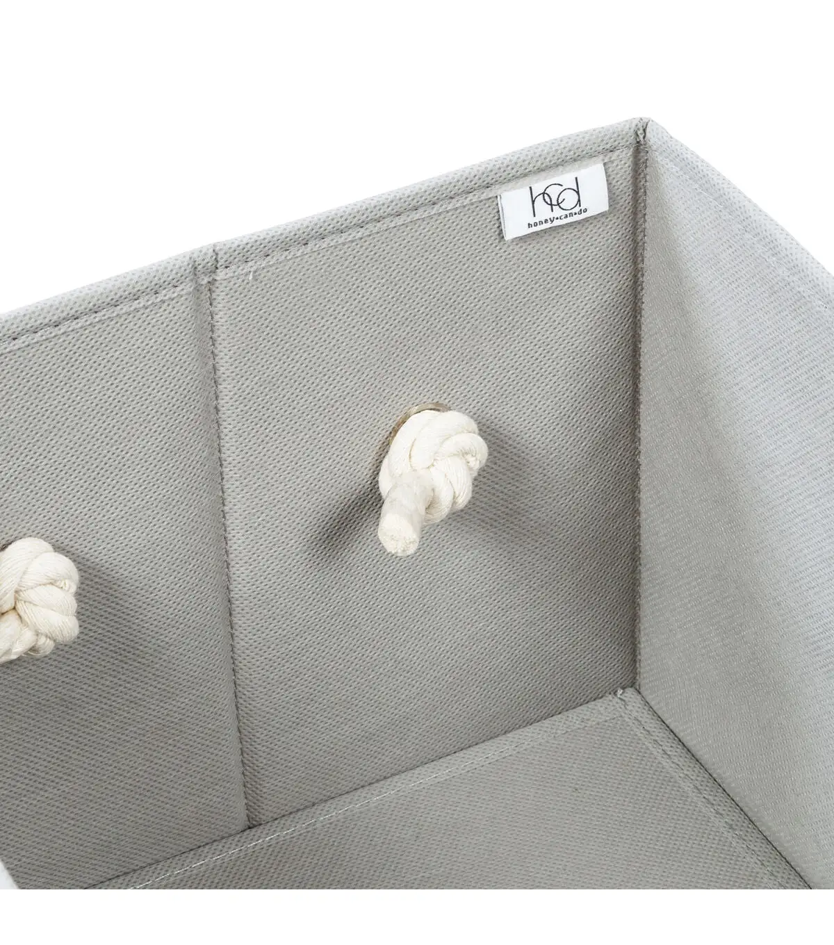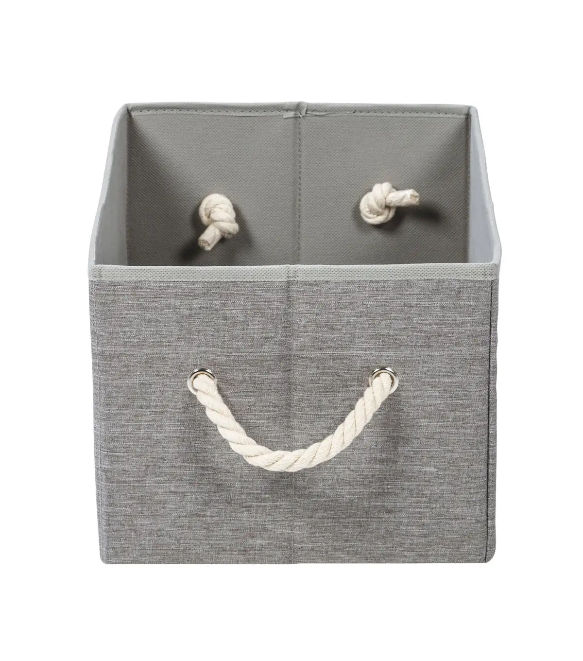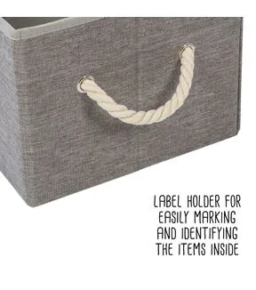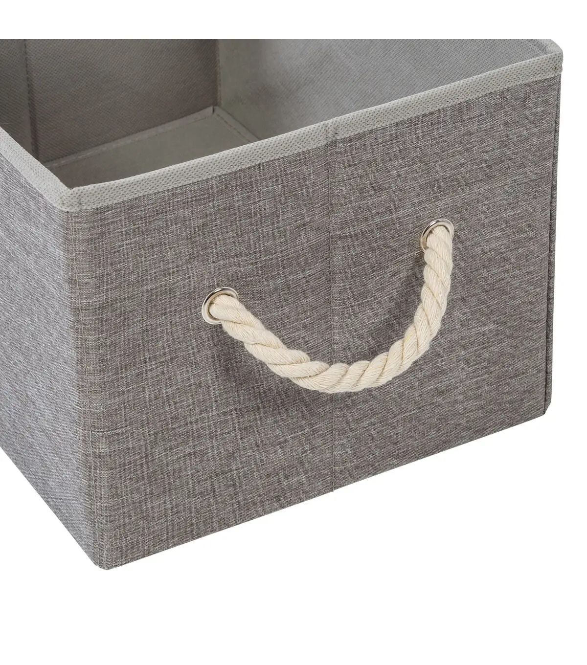 These versatile, large storage bins are perfect for storing clothing, bags, bathing supplies, towels, cleaning supplies, magazines, etc. While large, they are also the perfect size to store on shelves and/or in closets, but also look good and can be left out in the bedroom, bathroom or laundry room. Strong, durable fabric holds up to heavy loads and cotton rope handles allow for easy carrying of bins from room to room.