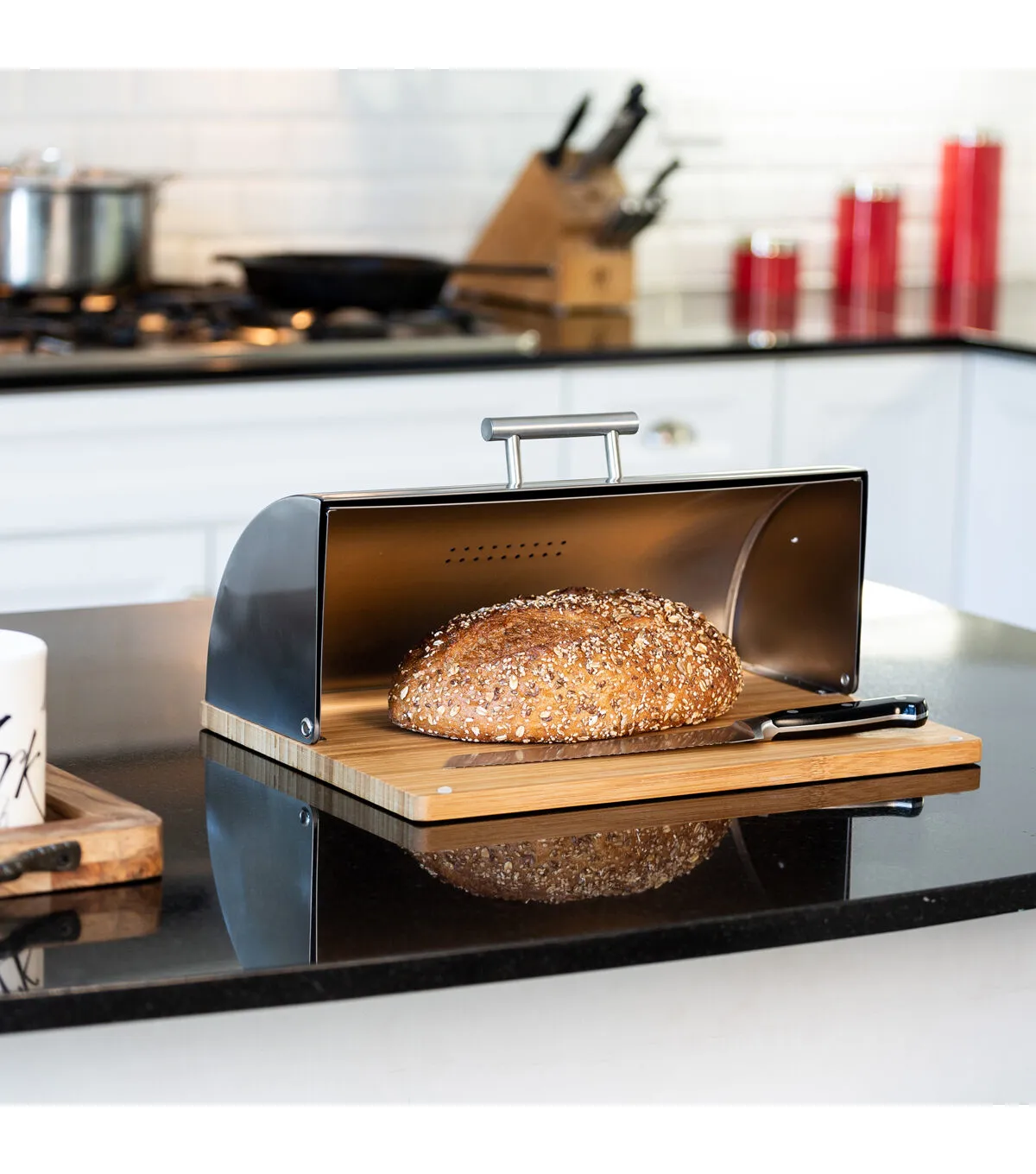 There are bread lovers and then there are bread lovers. For the latter, this bread box provides a place to keep your favorite loaf of sourdough, homemade, focaccia, French – you name it – fresh as can be. Its easy access lid lets you dive right in and cut a piece when the urge strikes. And speaking of cutting, its base is actually a durable, stain-proof cutting board made of bamboo. And whether your kitchen aesthetic is farmhouse, rustic, modern or traditional, this stainless steel bread box fits right in, like a piece of Italian bread at your family’s Friday night pasta dinner. Oh, and in addition to steering clear of stale bread, you can also store donuts and other pastries in here, too.