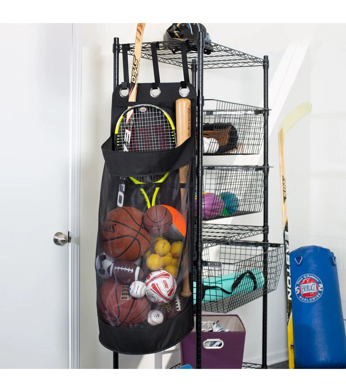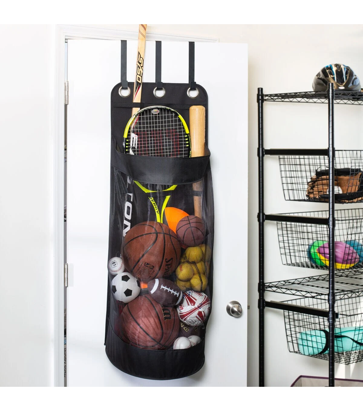You're all athletes in your house. No sport goes unplayed which is why this sports equipment storage bag is your MVP. The mesh bag lets you easily see and access balls anywhere in the bag, whether it's a basketball, football or soccer ball. The hooks hang conveniently over any door and there's also room for storage for baseball bats, hockey and lacrosse sticks and tennis rackets. When the final whistle blows, drop them all in the sports storage and head for the dinner table. It's time to feed the home team.