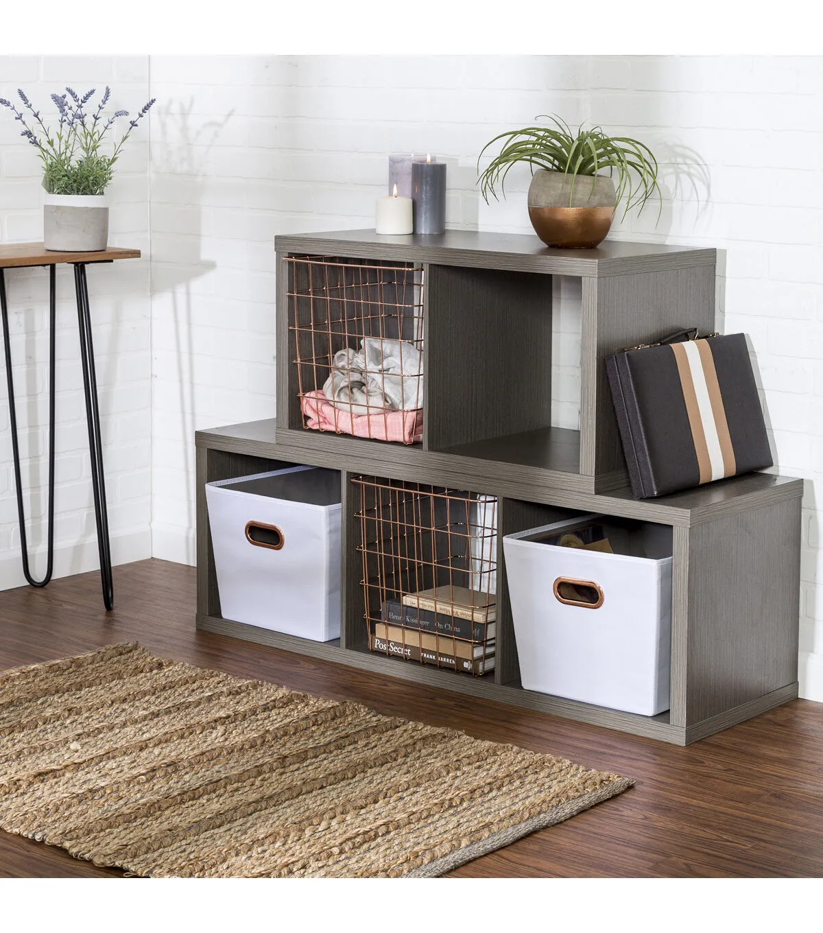 Organizational shelf with impeccable design and the functionality you need for your space. Lay it horizontally for added tabletop space or stand it up as a vertical decorative piece for your room.Perfect forany room to provide added shelf and bin space to keep all your smaller items properly stowed.