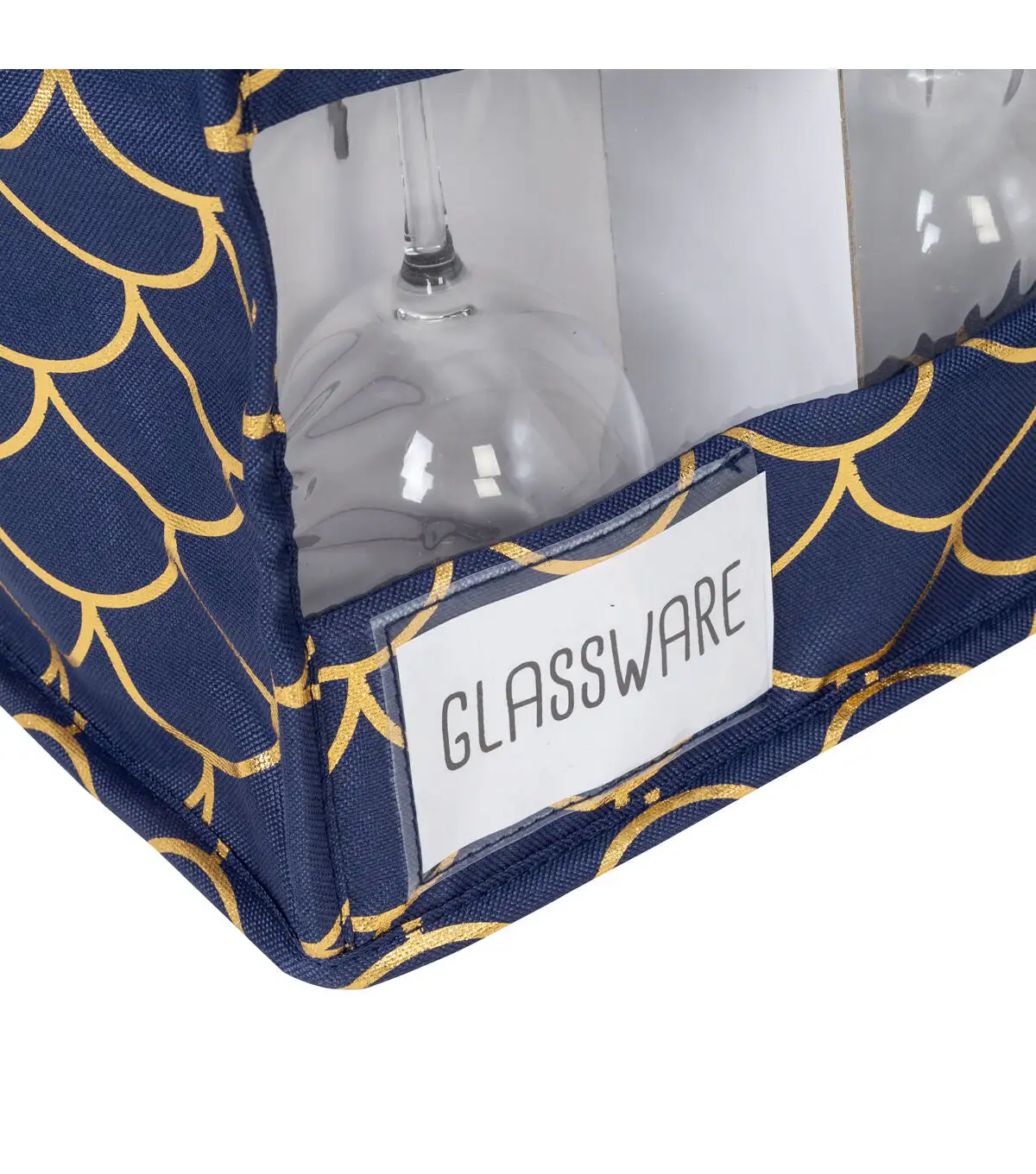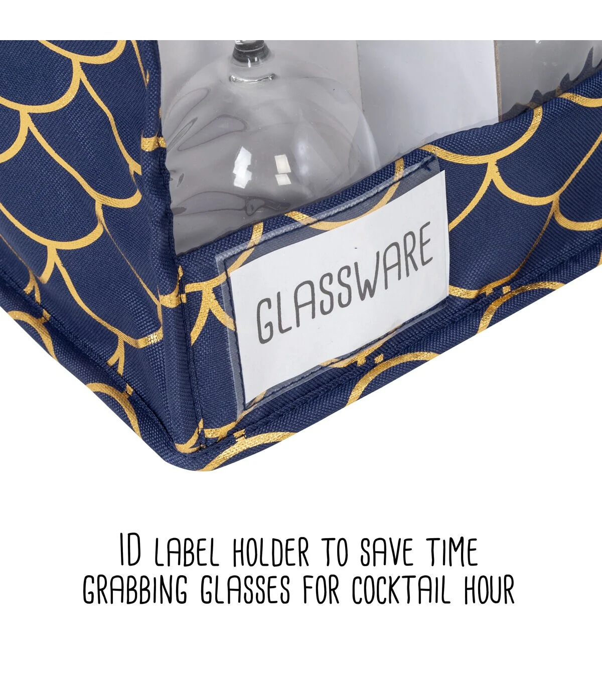 - Safely stores stemware like wine, champagne, martini, and pilsner glasses