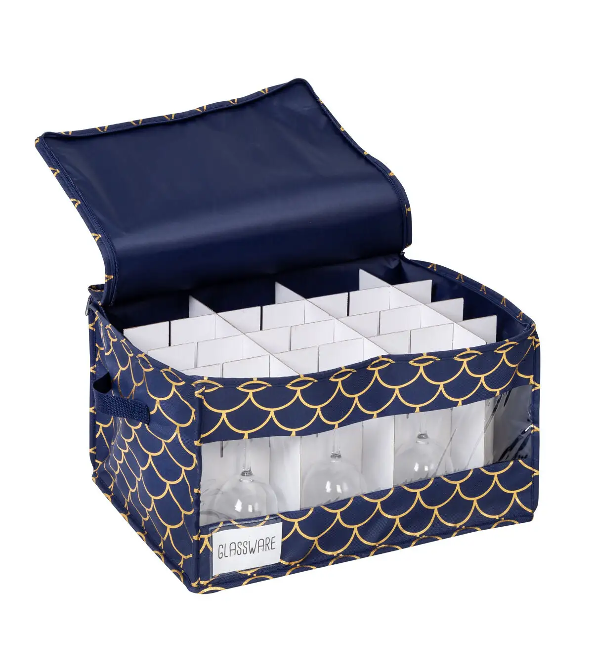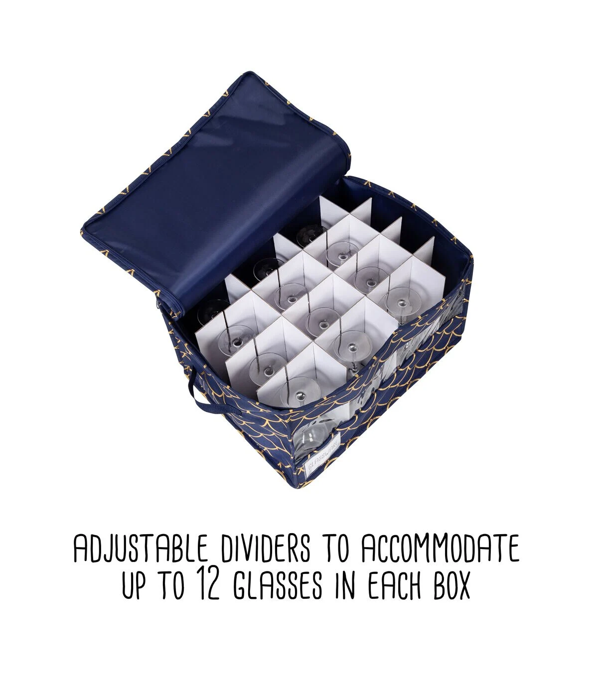 - Adjustable dividers to accommodate up to 12 glasses in each box