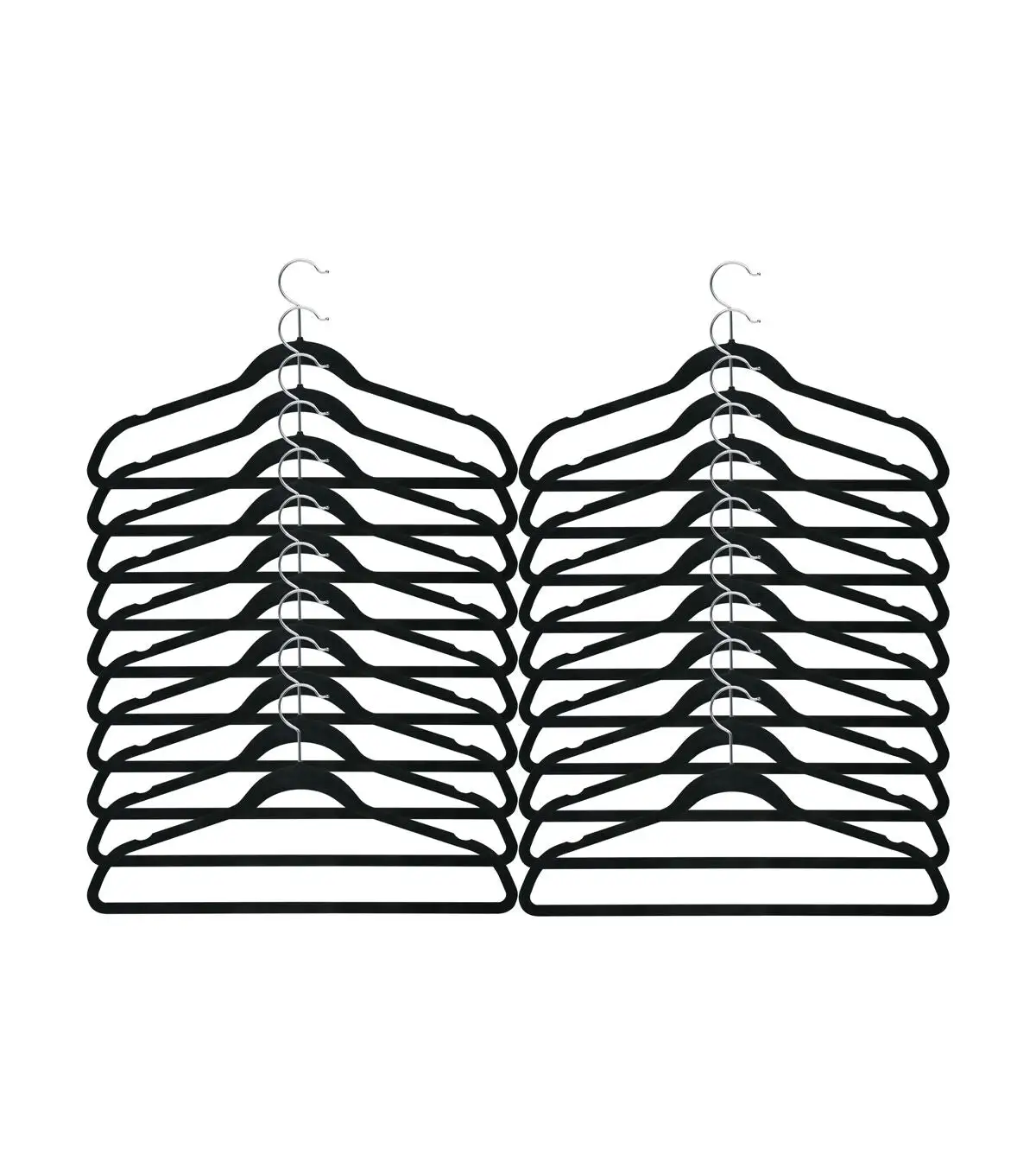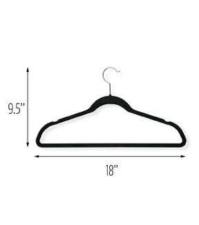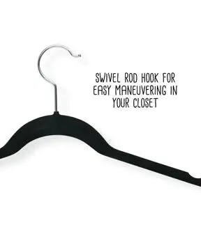 This clothes hanger is contoured to keep shirts, dresses, jackets, and pants perfectly wrinkle-free. Features a 360 degree chrome, swivel rod hook to hang items easily on any closet rod, towel bar, or standard size door. Durable metal construction provides strength, reliability, and long-lasting beauty. Soft velvet coating is gentle on delicate garments and provides a non-slip surface that holds fabrics beautifully in place. Slim, space-saving design makes the most use of available hanging space with its 1/4' profile.