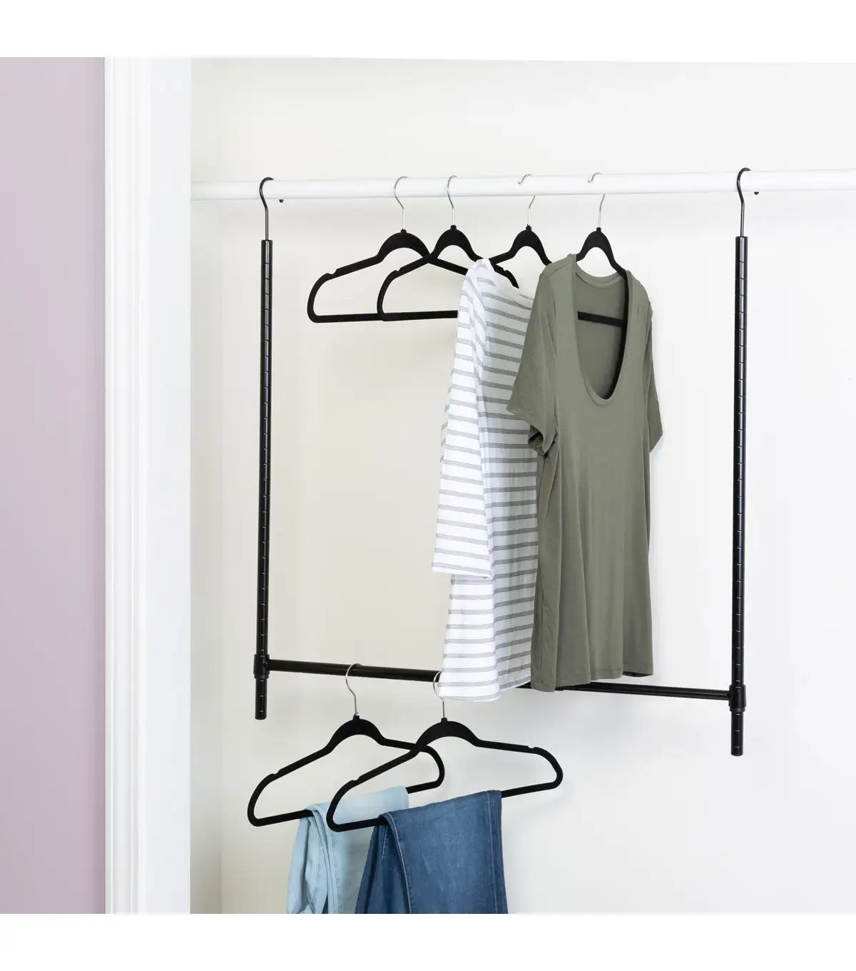 If you’ve ever had a closet with a double row of hanging space, it is, in fact, impossible to go back to just one. The honest truth: a closet with one rod for hanging items is a terribly inefficient use of space. It’s so unlike this hanging closet rod, which instantly doubles the existing clothes hanging space in a traditional closet. Without needing to take a measurement, find a tool, or apply for a construction permit, your closet capacity expands. With two rows on which your wardrobe can luxuriate, you’ll suddenly have room to rediscover the everyday favorites and statement pieces that had been locked away, hidden from sight on a single crammed closet rod.