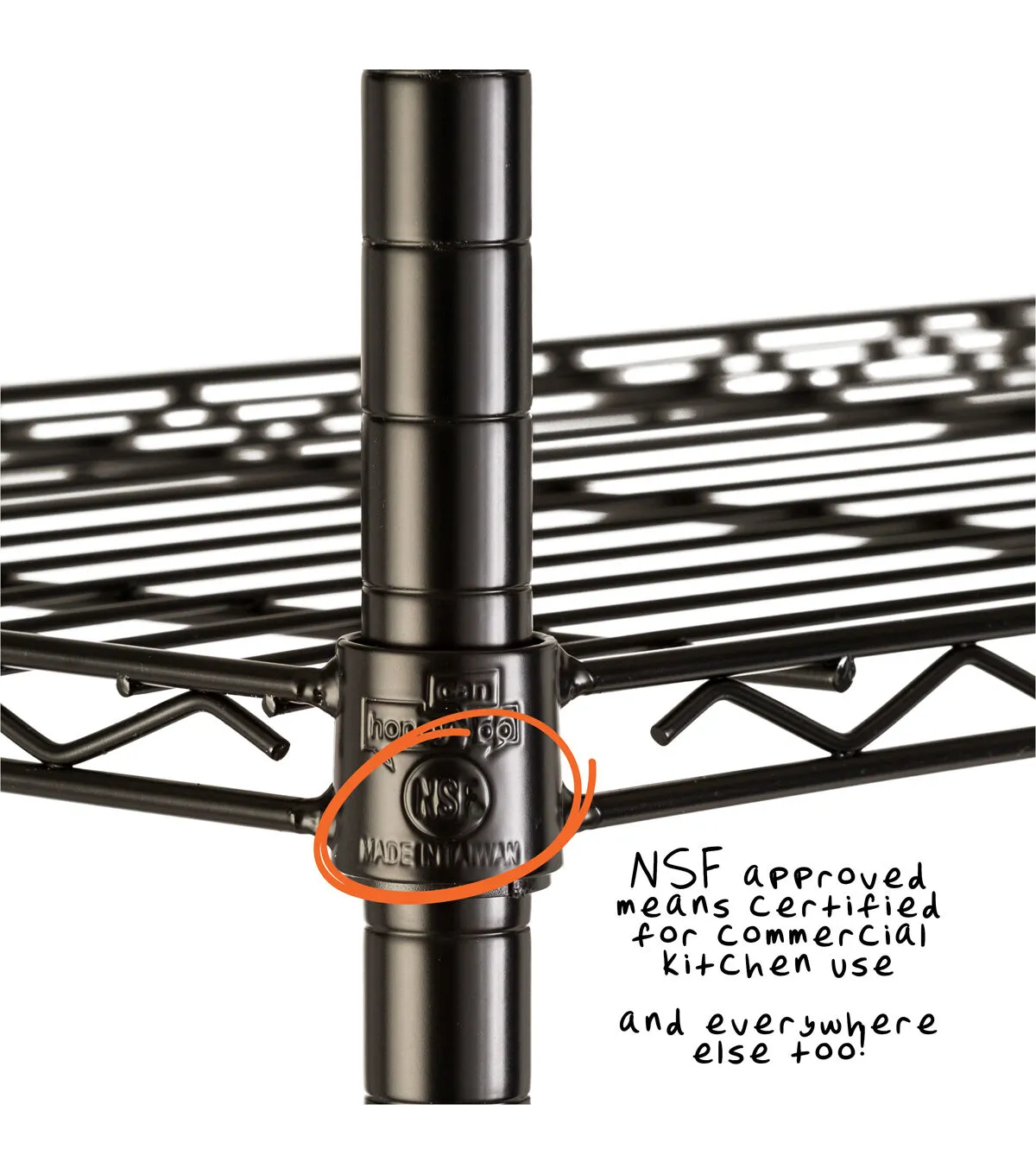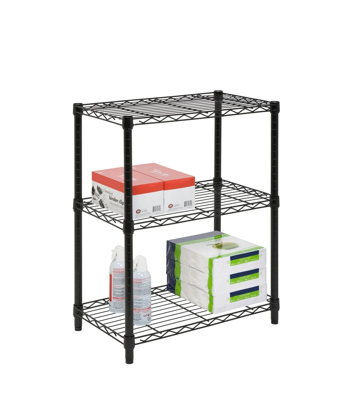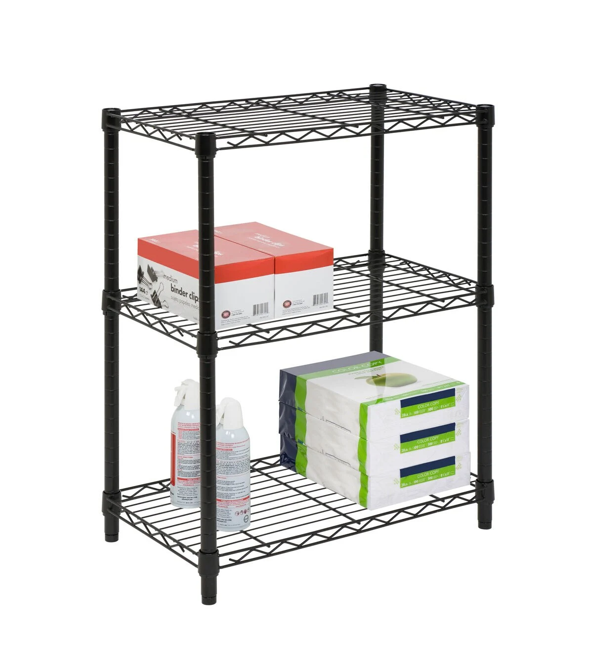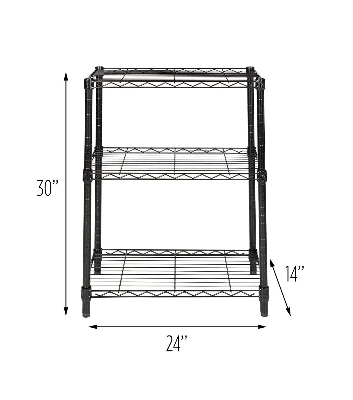 You were looking for new closet storage ideas when your sweaters requested a sit down with you. Not only did they ask you to stop putting them on hangers, but they suggested you straighten up your shoe collection, too. That’s when you decided it was time to restore order to your closet with this 3-Tier Heavy Duty Adjustable Black Shelving Unit. Its commercial-grade durability is tough for any of your kitchen shelving needs, or to tame your wardrobe gone wild, while its steel grated shelves allow your garments plenty of breathing room. Easy to assemble and versatile, this adjustable shelving unit also straightens up messes in your basement or garage.
