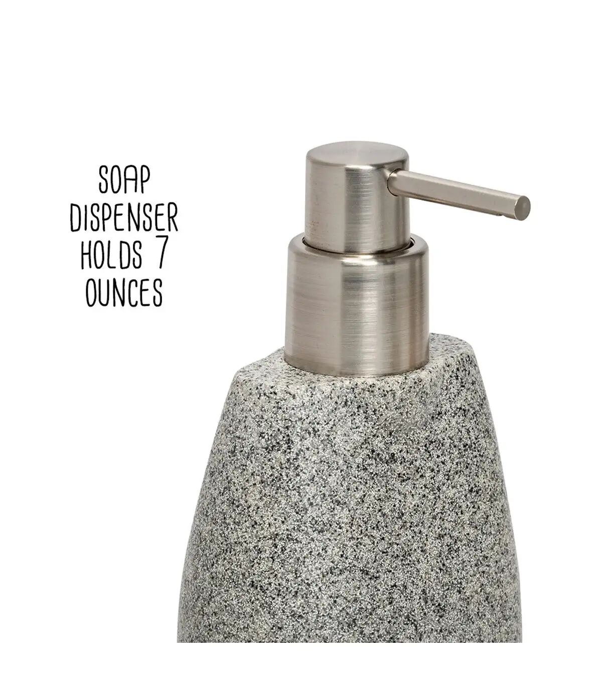 This bathroom accessories set makes for the ideal one-stop-shop with toothbrush holder, tumbler, soap dispenser and soap dish. Its earthy tone and natural look brings a light design element to your bathroom, while its durable material stands up to everyday use.