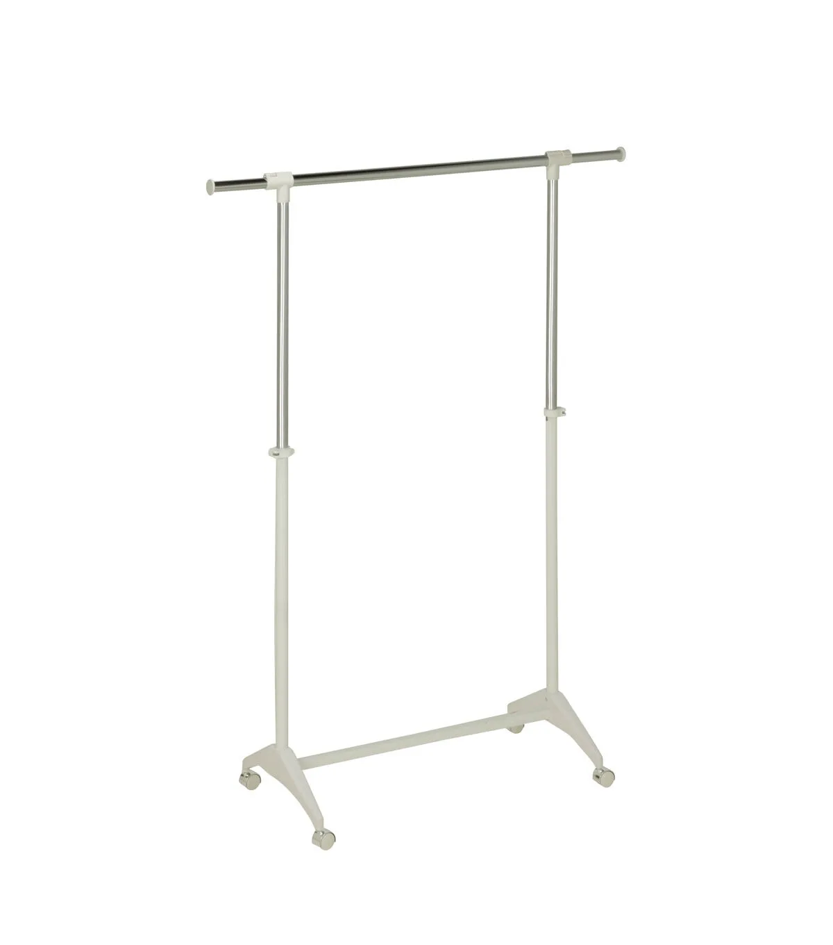 Sometimes function just wins over form. When you need something to hang clothing items in a pinch, you could put hangers on your shower rod (not recommended) or wheel this rolling clothes rack into position. With a chrome rod and white plastic trim, it's not flashy, but when it comes to extra closet space, it's a solid option. The garment rod expands up to 5 1/2 feet, giving you ample room to hang guests' coats or line-dry delicate garments. And when you're ready to put it away, two of its rolling casters lock so you can keep it in place.