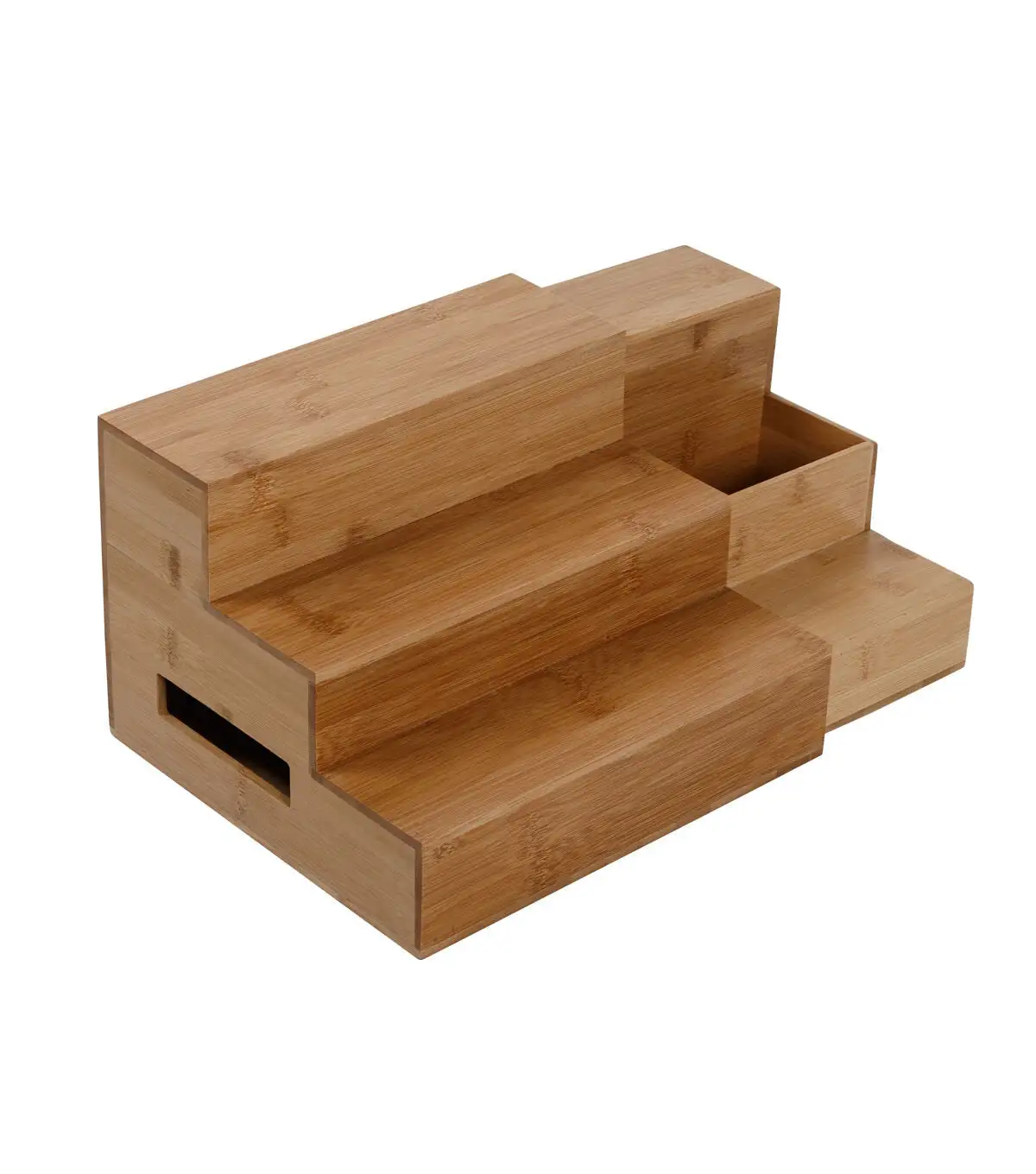 Spice up your kitchen organization—and modernize it—with a sleek and adjustable bamboo spice rack. The minimal wood design features 3 tiers, a sleek natural finish, and cut out handles that make adjusting the width a cinch. Squeeze this spice rack organizer into a cabinet so you know exactly what spices, extracts, or essential oils are in the back. Or widen it to stylize your countertop and keep your favorite flavorings and small condiments in reach. Whether used as a cabinet spice rack or countertop organizer, the open compartment ensures taller items like straws, jars, and utensils don’t get left out of this chic display.