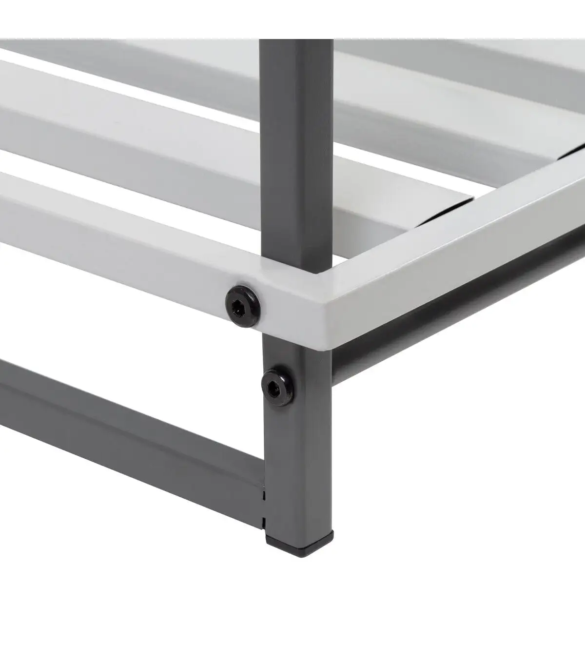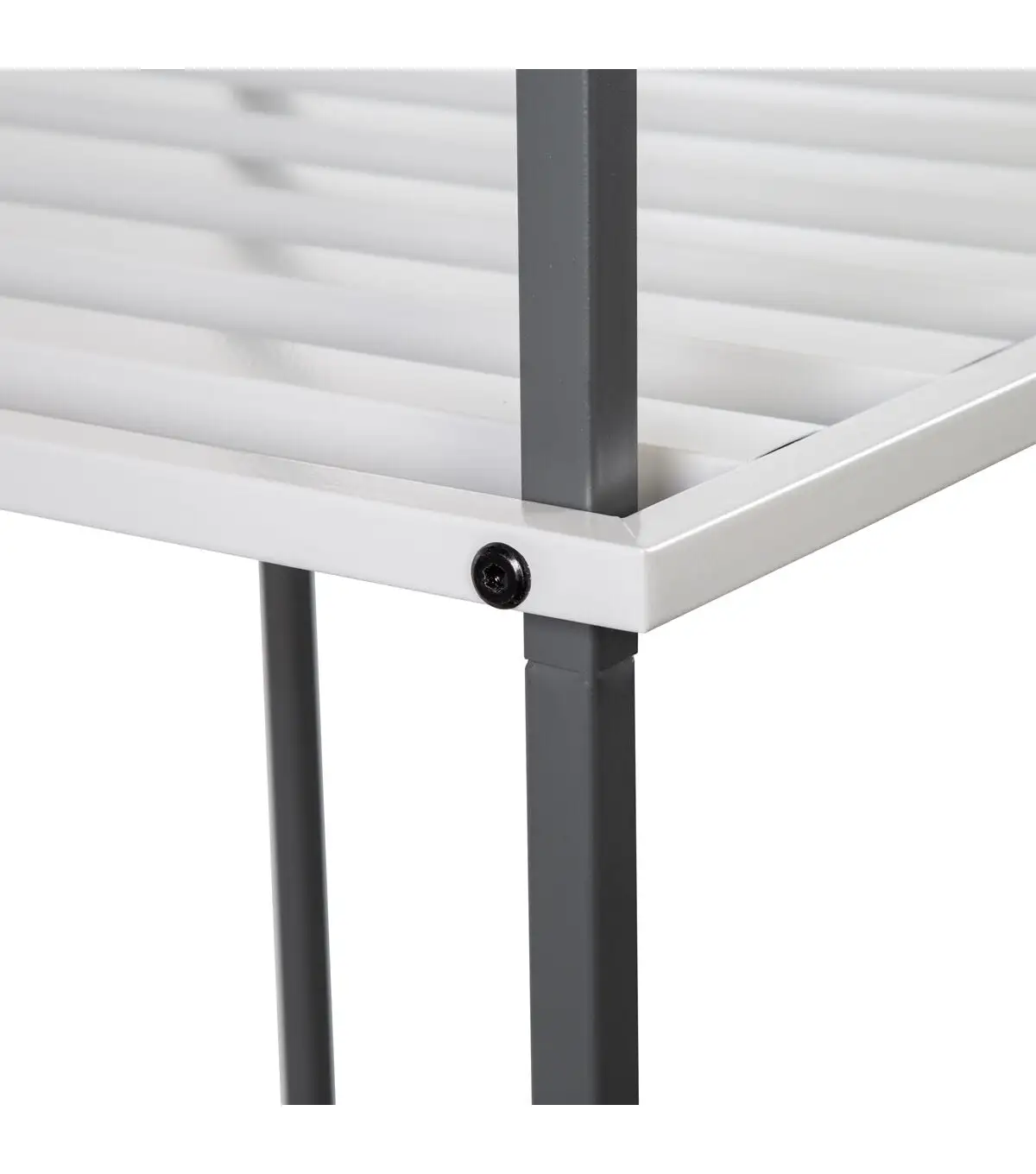 - Sturdy steel construction finished with color blocks of light and dark gray